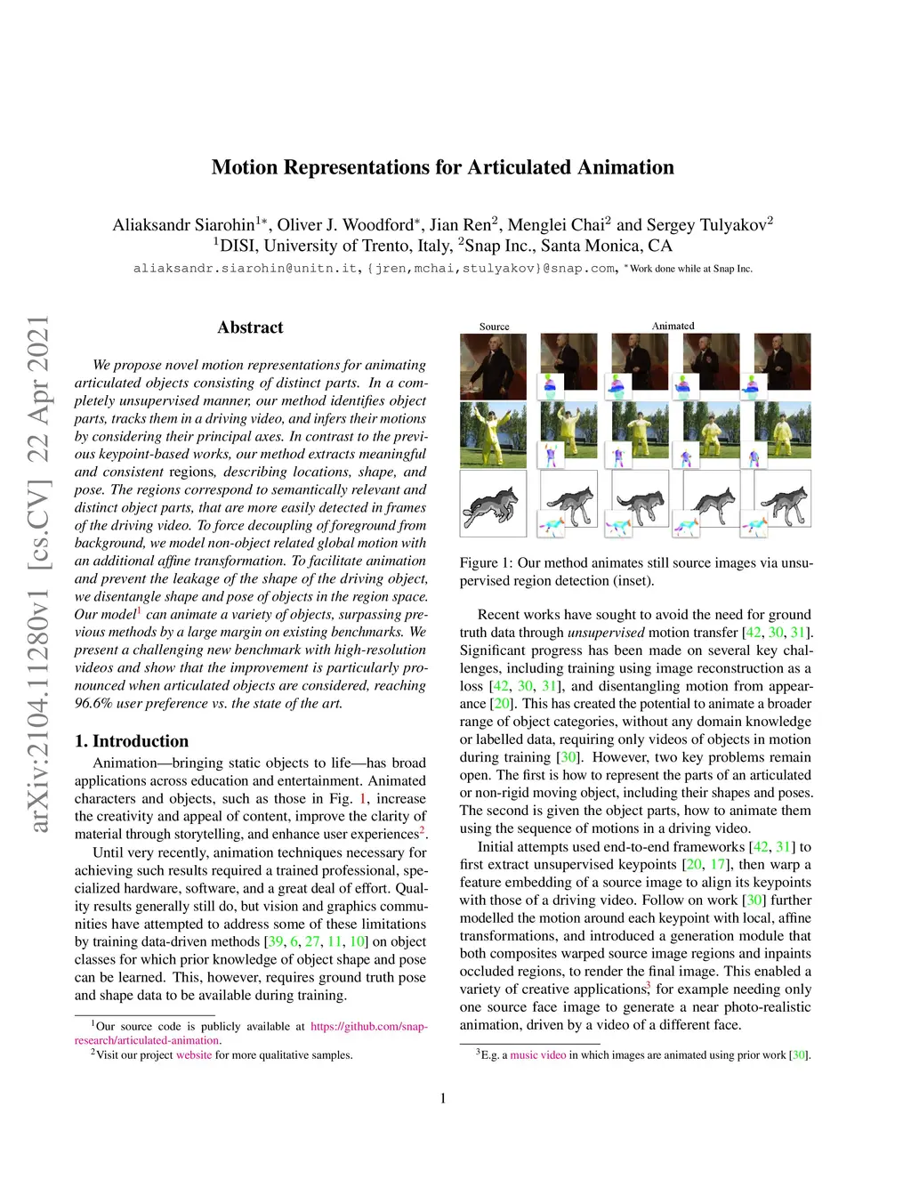 Motion Representations for Articulated Animation