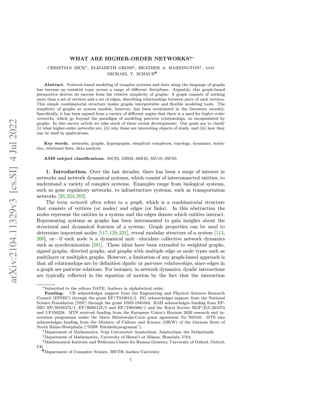 Network-based modeling of complex systems and data using the language of graphs has become an essential topic across a range of different disciplines. Arguably, this graph-based perspective derives its success from the relative simplicity of graphs: A graph consists of nothing more than a set of vertices and a set of edges, describing relationships between pairs of such vertices. This simple combinatorial structure makes graphs interpretable and flexible modeling tools. The simplicity of graphs as system models, however, has been scrutinized in the literature recently. Specifically, it has been argued from a variety of different angles that there is a need for higher-order networks, which go beyond the paradigm of modeling pairwise relationships, as encapsulated by graphs. In this survey article we take stock of these recent developments. Our goals are to clarify (i) what higher-order networks are, (ii) why these are interesting objects of study, and (iii) how they can be used in applications.