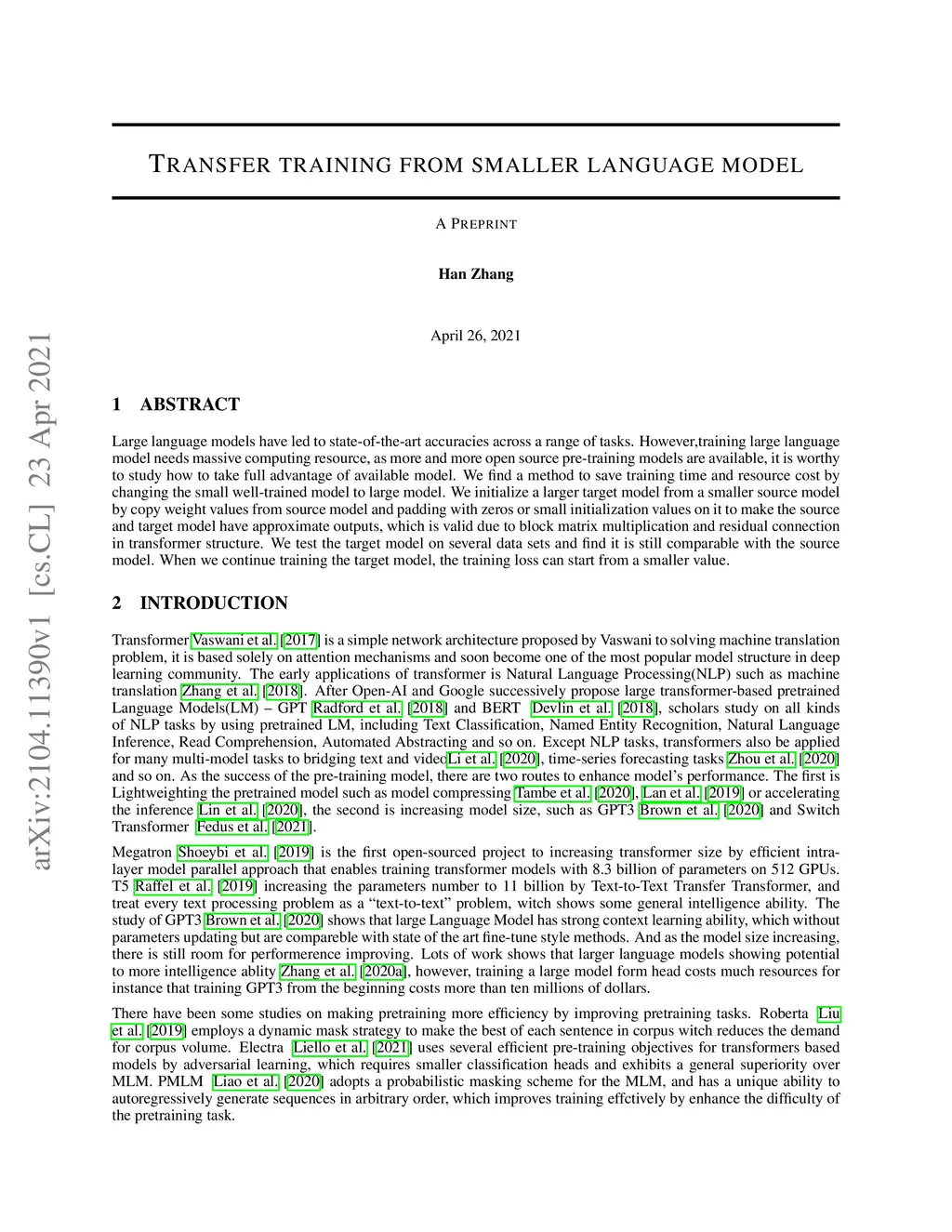 Large language models have led to state-of-the-art accuracies across a range of tasks. However,training large language model needs massive computing resource, as more and more open source pre-training models are available, it is worthy to study how to take full advantage of available model. We find a method to save training time and resource cost by changing the small well-trained model to large model. We initialize a larger target model from a smaller source model by copy weight values from source model and padding with zeros or small initialization values on it to make the source and target model have approximate outputs, which is valid due to block matrix multiplication and residual connection in transformer structure. We test the target model on several data sets and find it is still comparable with the source model. When we continue training the target model, the training loss can start from a smaller value.