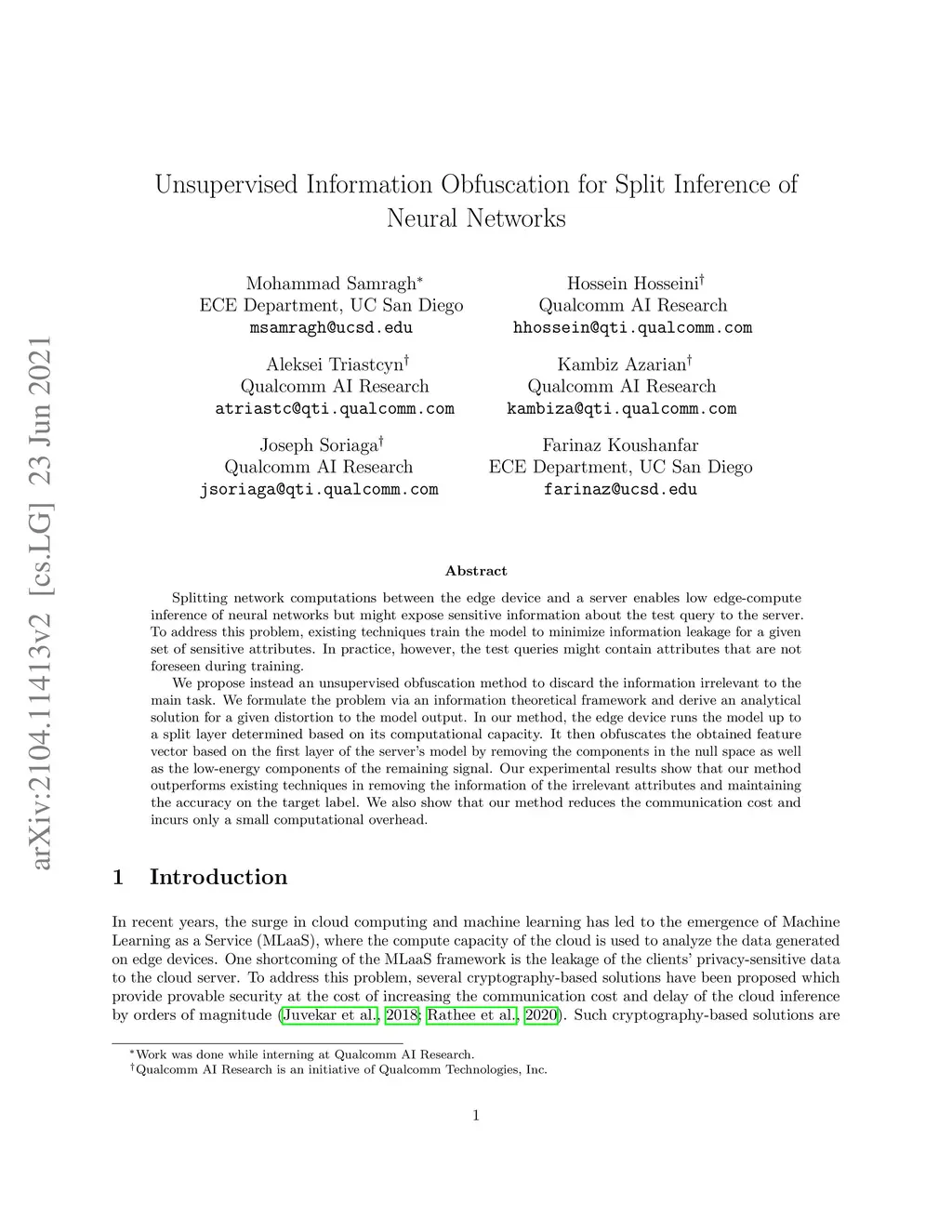 Unsupervised Information Obfuscation for Split Inference of Neural