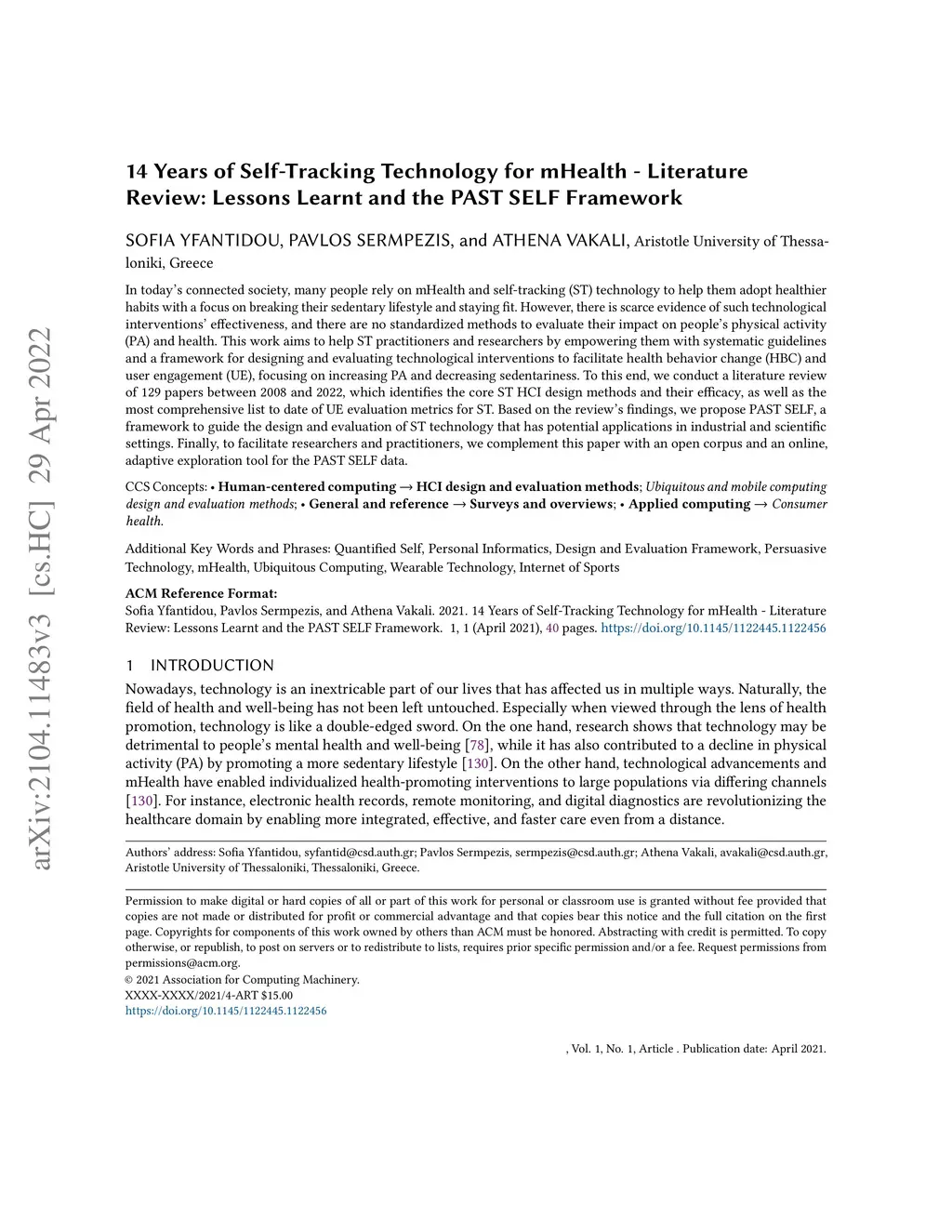 Self-Tracking Technology for mHealth: A Systematic Review and the PAST