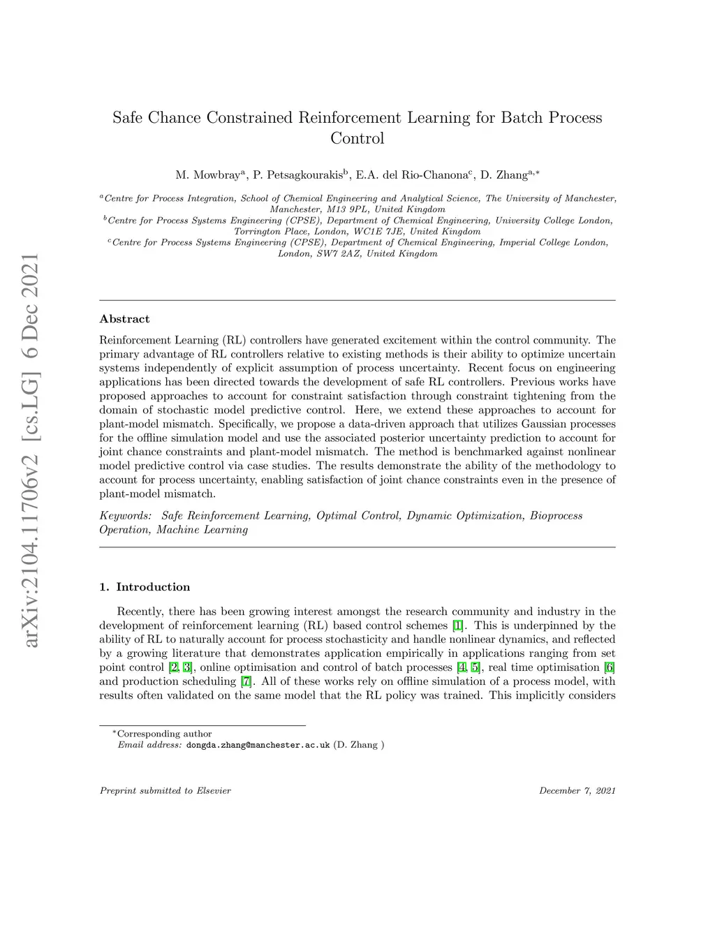 Safe Chance Constrained Reinforcement Learning for Batch Process Control