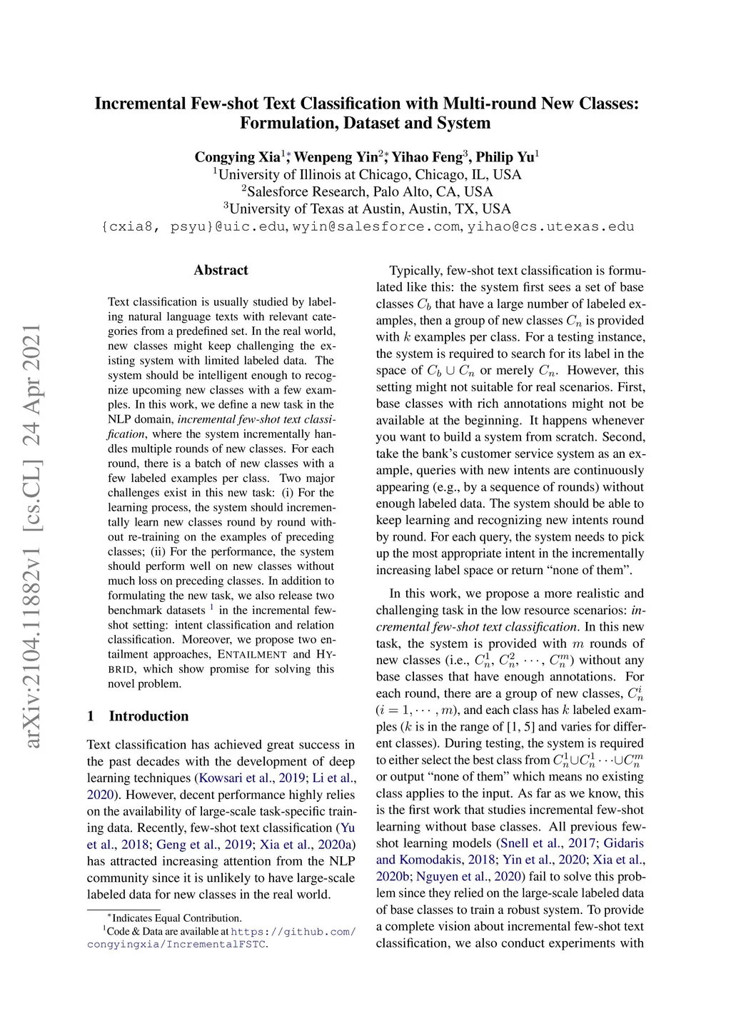 Incremental Few-shot Text Classification with Multi-round New Classes: