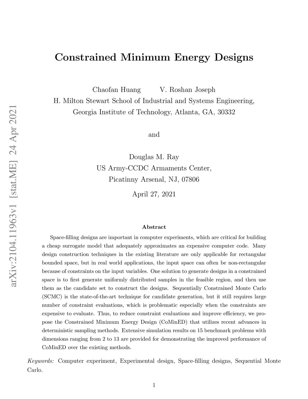 Constrained Minimum Energy Designs