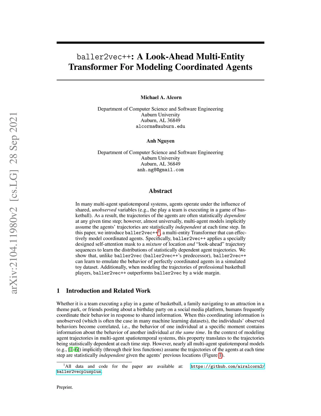 In many multi-agent spatiotemporal systems, agents operate under the influence of shared, unobserved variables (e.g., the play a team is executing in a game of basketball). As a result, the trajectories of the agents are often statistically dependent at any given time step; however, almost universally, multi-agent models implicitly assume the agents' trajectories are statistically independent at each time step. In this paper, we introduce baller2vec++, a multi-entity Transformer that can effectively model coordinated agents. Specifically, baller2vec++ applies a specially designed self-attention mask to a mixture of location and "look-ahead" trajectory sequences to learn the distributions of statistically dependent agent trajectories. We show that, unlike baller2vec (baller2vec++'s predecessor), baller2vec++ can learn to emulate the behavior of perfectly coordinated agents in a simulated toy dataset. Additionally, when modeling the trajectories of professional basketball players, baller2vec++ outperforms baller2vec by a wide margin.