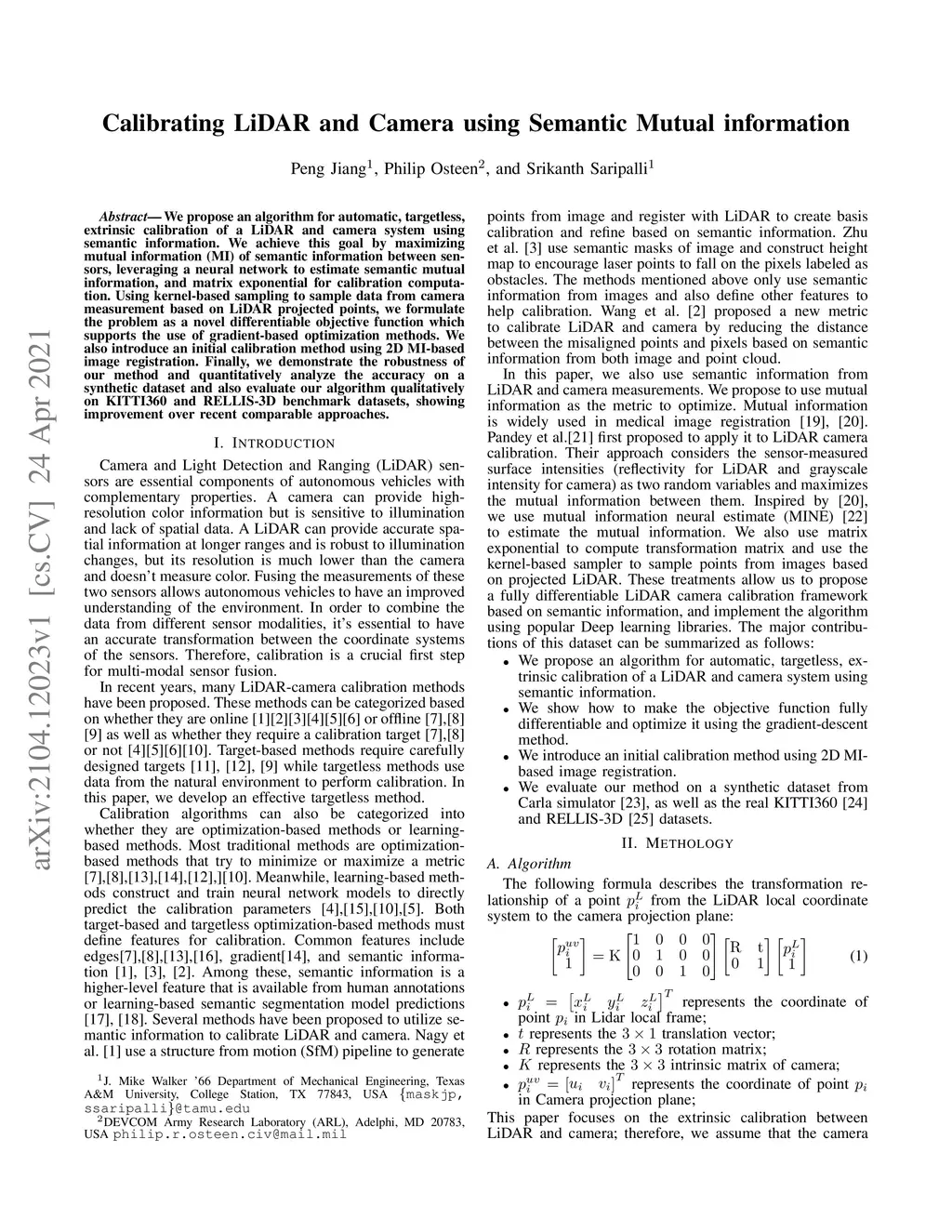 Calibrating LiDAR and Camera using Semantic Mutual information