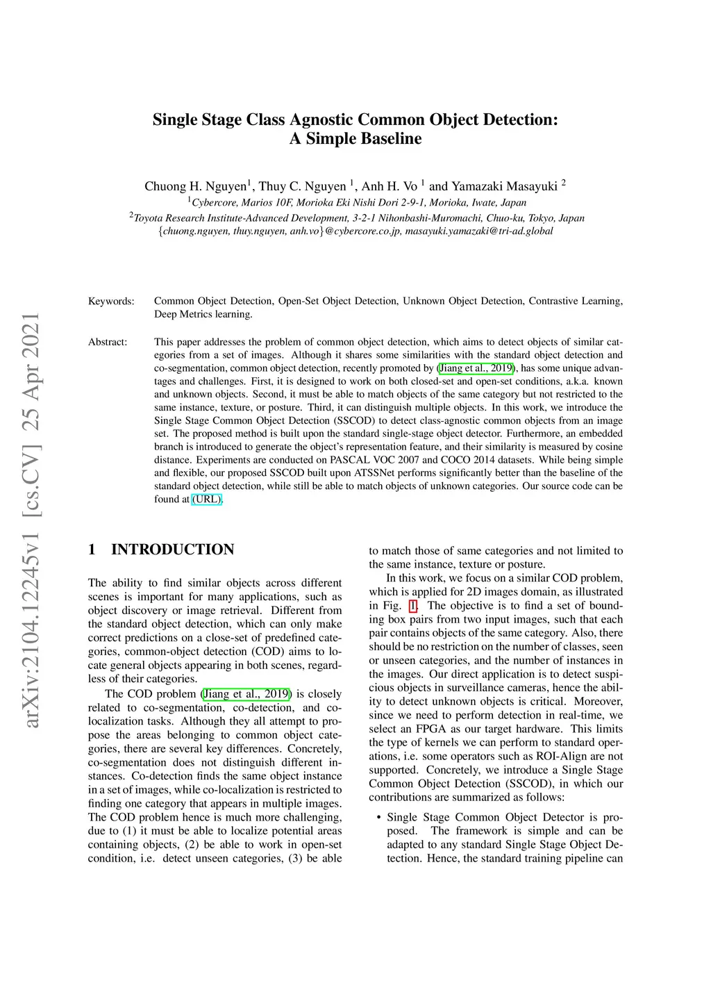 Single Stage Class Agnostic Common Object Detection: A Simple Baseline