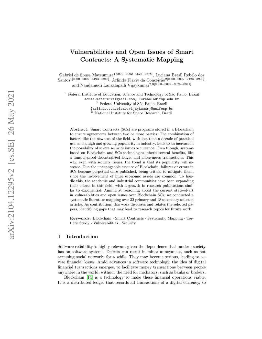 Vulnerabilities and Open Issues of Smart Contracts: A Systematic Mapping