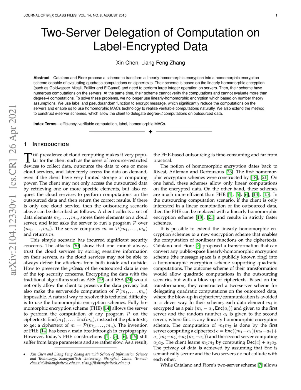 Two-Server Delegation of Computation on Label-Encrypted Data