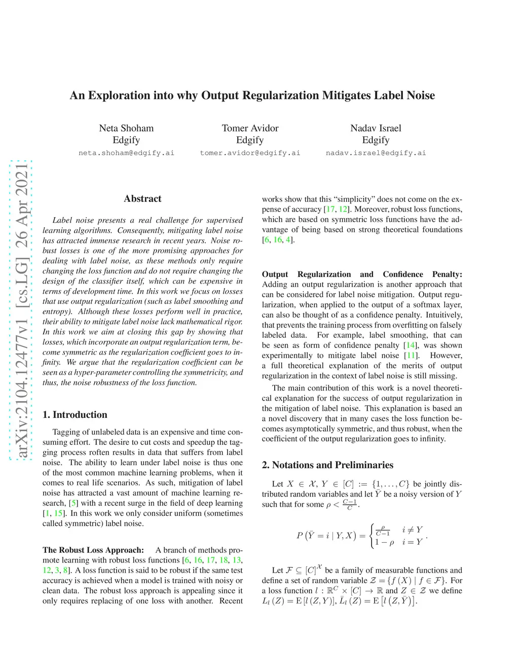 Label noise presents a real challenge for supervised learning algorithms. Consequently, mitigating label noise has attracted immense research in recent years. Noise robust losses is one of the more promising approaches for dealing with label noise, as these methods only require changing the loss function and do not require changing the design of the classifier itself, which can be expensive in terms of development time. In this work we focus on losses that use output regularization (such as label smoothing and entropy). Although these losses perform well in practice, their ability to mitigate label noise lack mathematical rigor. In this work we aim at closing this gap by showing that losses, which incorporate an output regularization term, become symmetric as the regularization coefficient goes to infinity. We argue that the regularization coefficient can be seen as a hyper-parameter controlling the symmetricity, and thus, the noise robustness of the loss function.