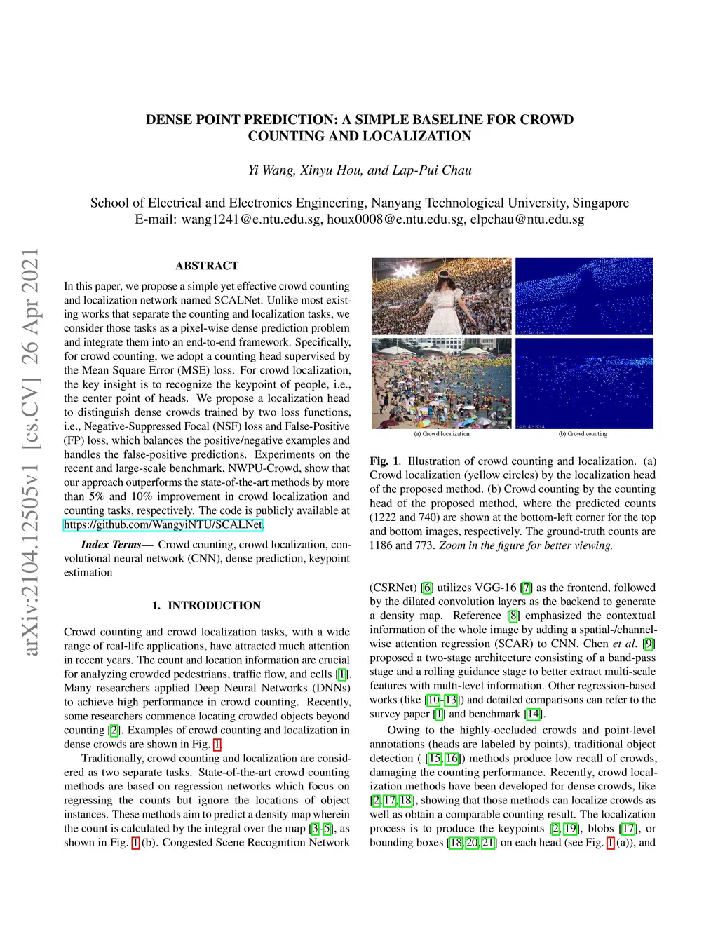 In this paper, we propose a simple yet effective crowd counting and localization network named SCALNet. Unlike most existing works that separate the counting and localization tasks, we consider those tasks as a pixel-wise dense prediction problem and integrate them into an end-to-end framework. Specifically, for crowd counting, we adopt a counting head supervised by the Mean Square Error (MSE) loss. For crowd localization, the key insight is to recognize the keypoint of people, i.e., the center point of heads. We propose a localization head to distinguish dense crowds trained by two loss functions, i.e., Negative-Suppressed Focal (NSF) loss and False-Positive (FP) loss, which balances the positive/negative examples and handles the false-positive predictions. Experiments on the recent and large-scale benchmark, NWPU-Crowd, show that our approach outperforms the state-of-the-art methods by more than 5% and 10% improvement in crowd localization and counting tasks, respectively. The code is publicly available at https://github.com/WangyiNTU/SCALNet.
