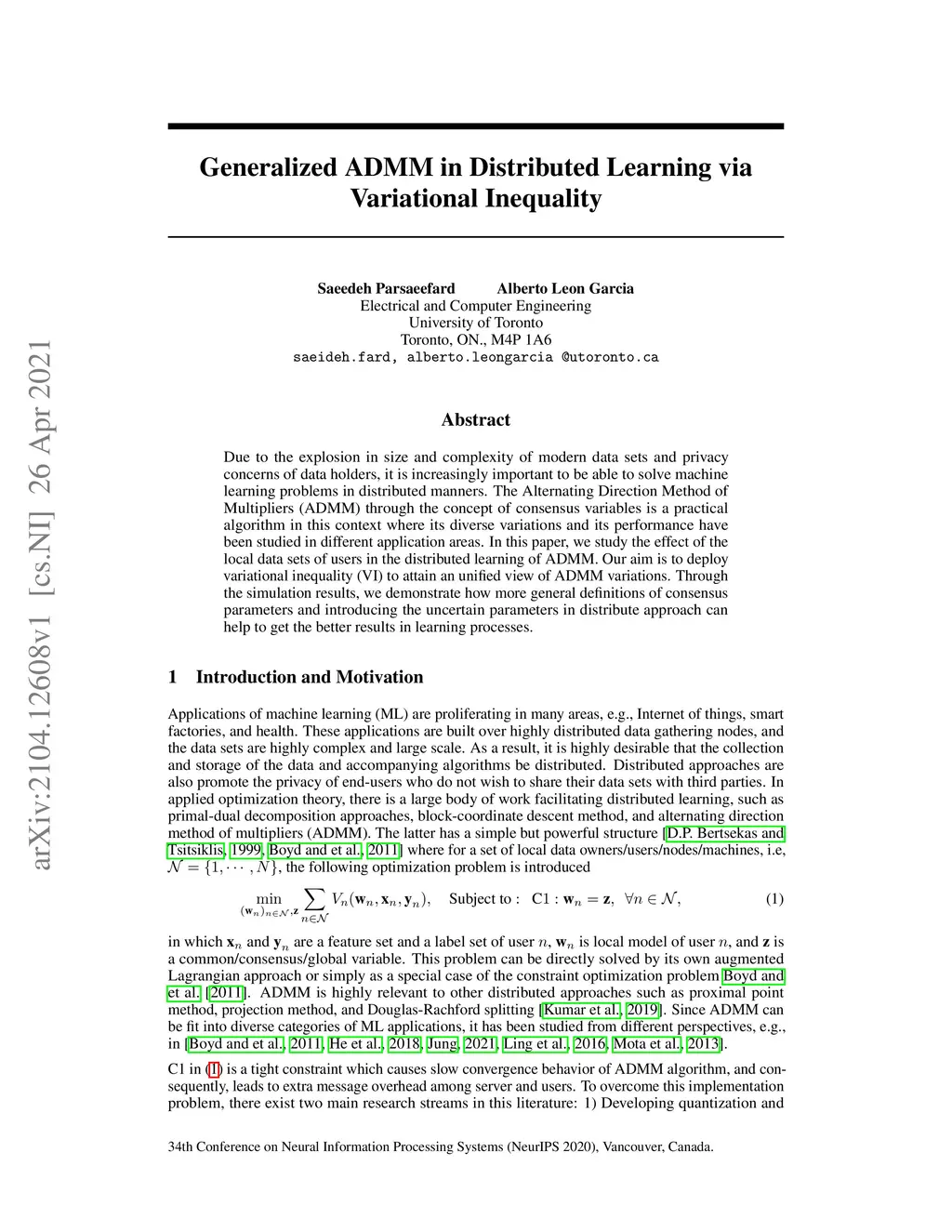 Due to the explosion in size and complexity of modern data sets and privacy concerns of data holders, it is increasingly important to be able to solve machine learning problems in distributed manners. The Alternating Direction Method of Multipliers (ADMM) through the concept of consensus variables is a practical algorithm in this context where its diverse variations and its performance have been studied in different application areas. In this paper, we study the effect of the local data sets of users in the distributed learning of ADMM. Our aim is to deploy variational inequality (VI) to attain an unified view of ADMM variations. Through the simulation results, we demonstrate how more general definitions of consensus parameters and introducing the uncertain parameters in distribute approach can help to get the better results in learning processes.