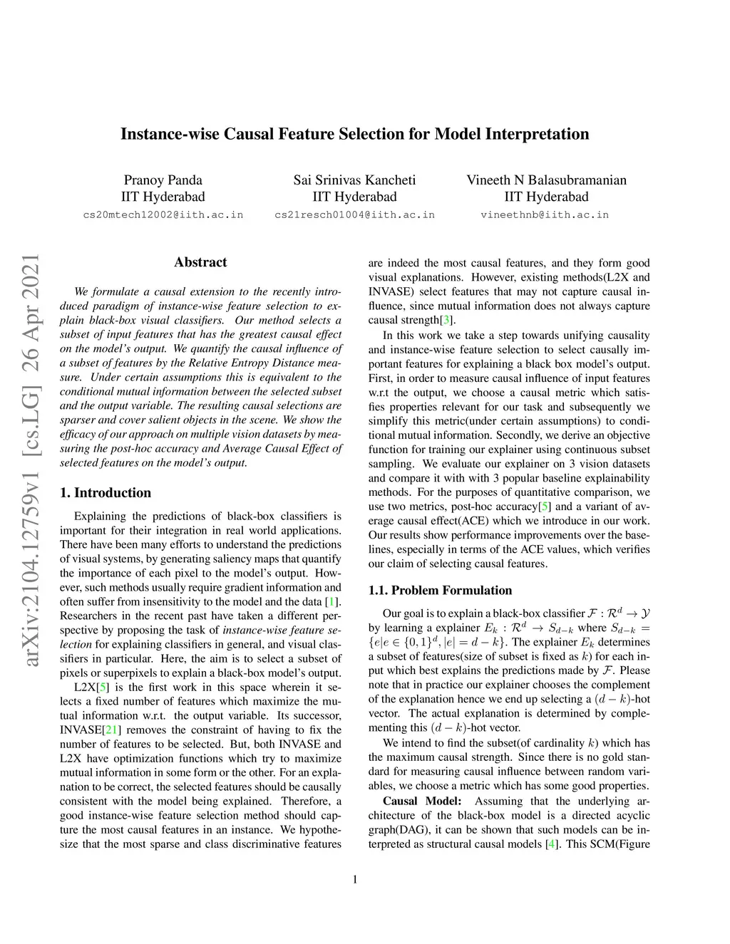 Instance-wise Causal Feature Selection for Model Interpretation