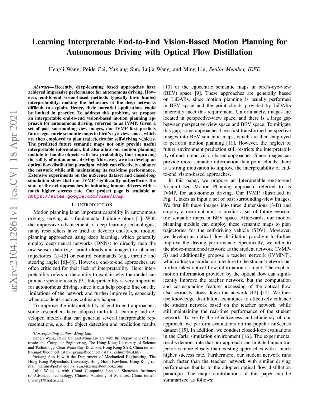 Autonomous Driving with Optical Flow Distillation