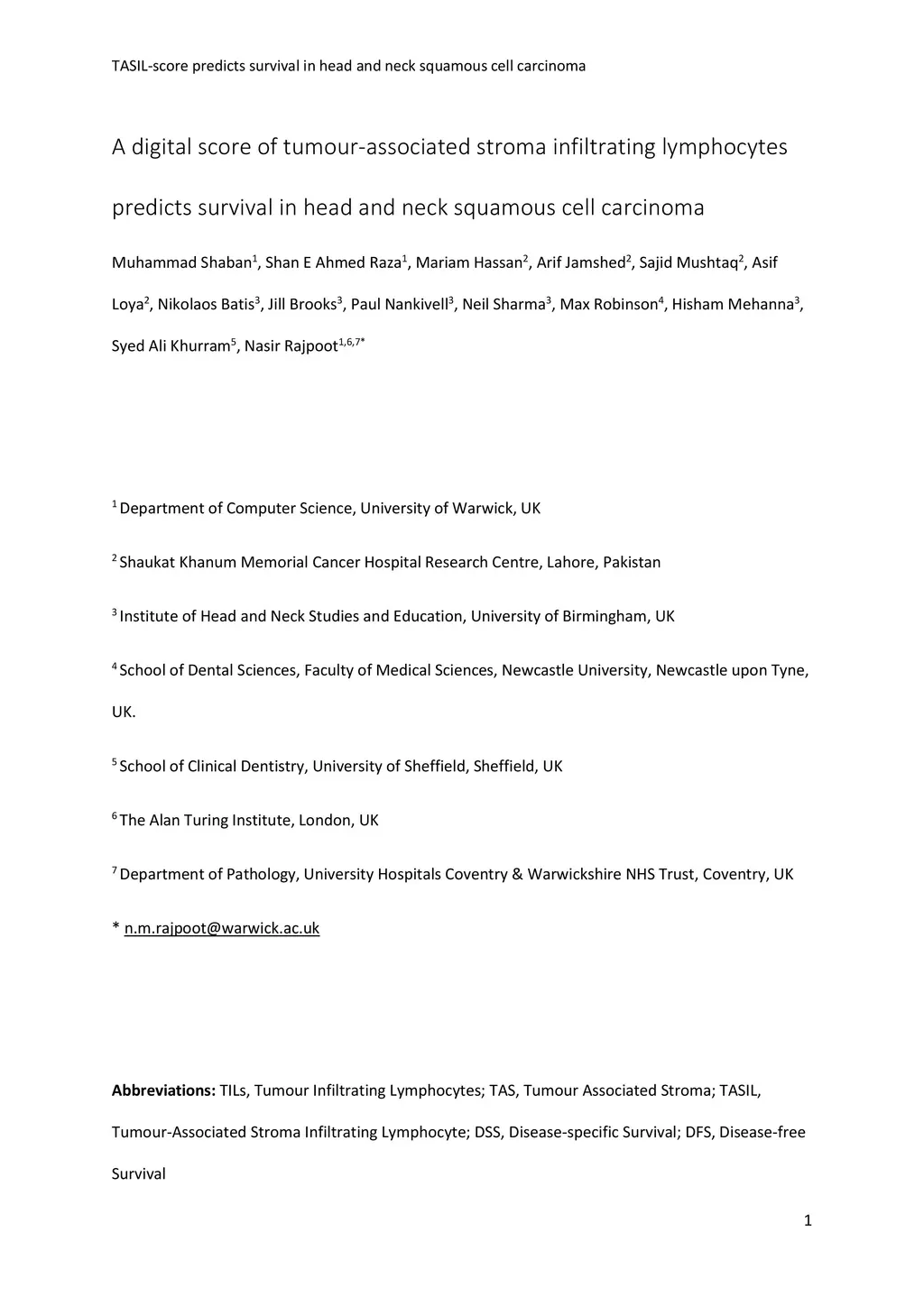 A digital score of tumour-associated stroma infiltrating lymphocytes