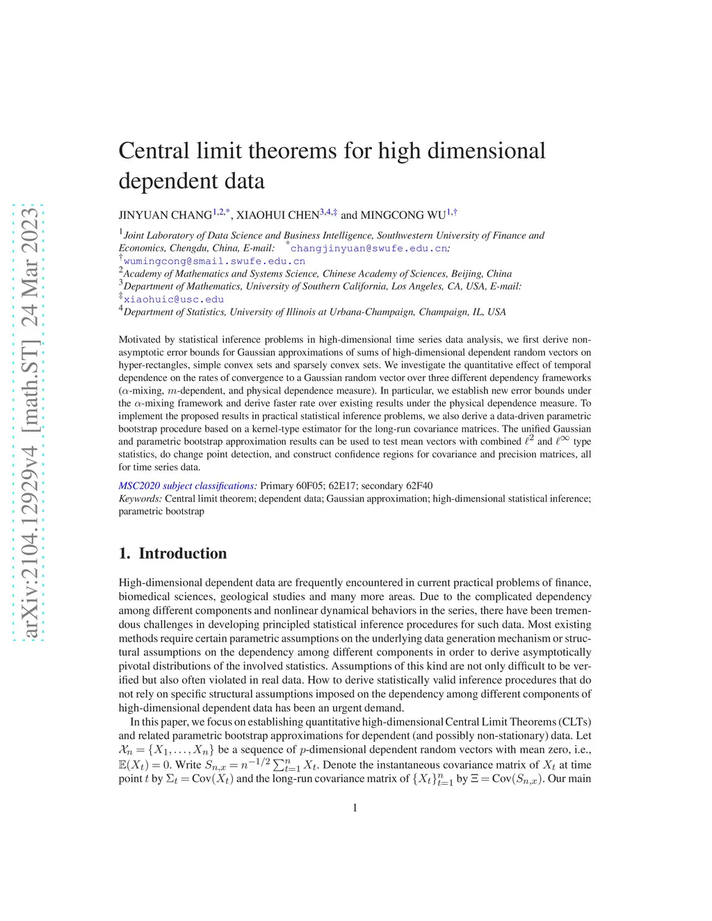 Central limit theorems for high dimensional dependent data
