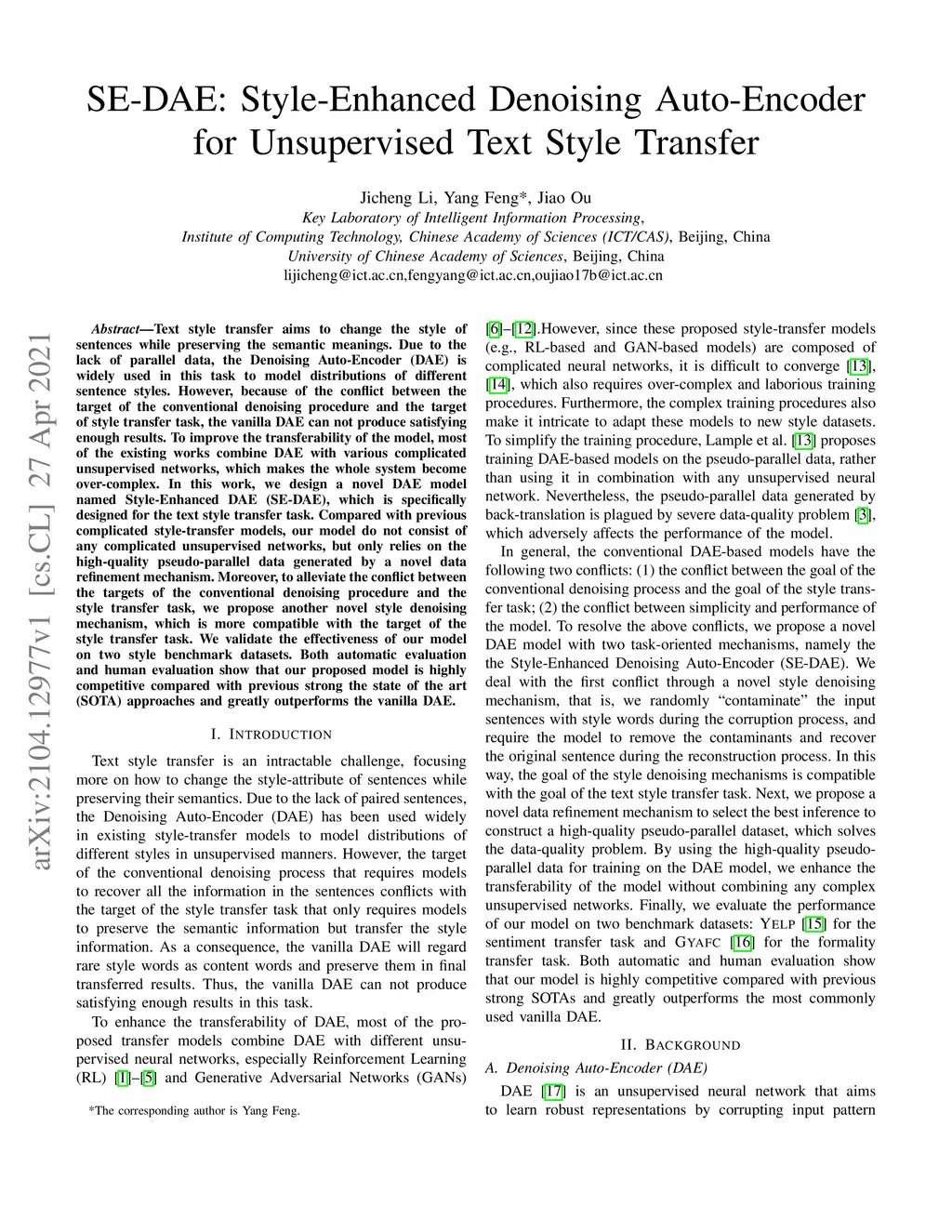 SE-DAE: Style-Enhanced Denoising Auto-Encoder for Unsupervised Text