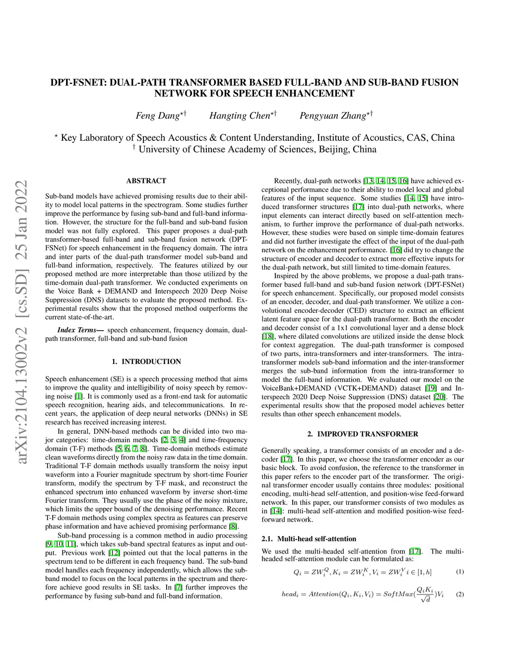 DPT-FSNet: Dual-path Transformer Based Full-band and Sub-band Fusion