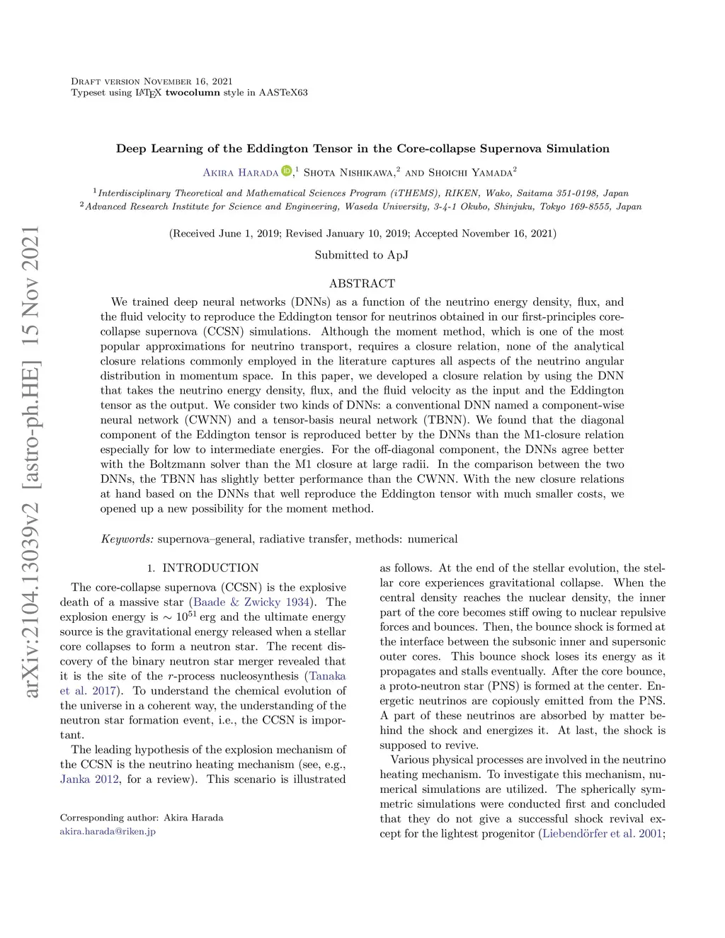 Deep Learning of the Eddington Tensor in the Core-collapse Supernova