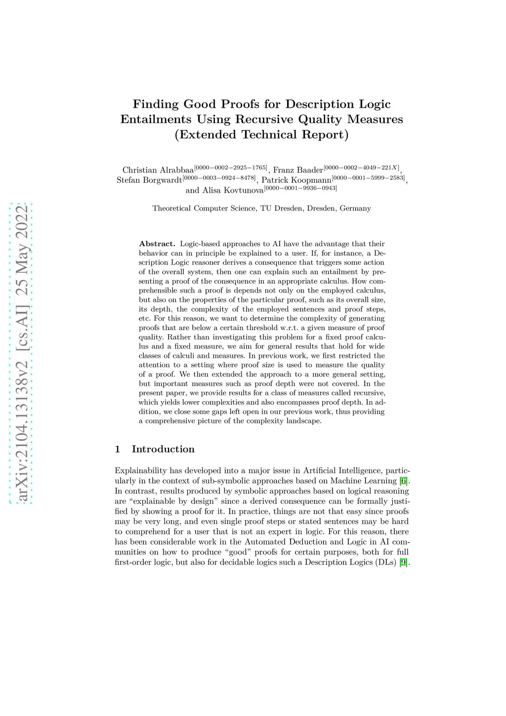 Logic-based approaches to AI have the advantage that their behavior can in principle be explained to a user. If, for instance, a Description Logic reasoner derives a consequence that triggers some action of the overall system, then one can explain such an entailment by presenting a proof of the consequence in an appropriate calculus. How comprehensible such a proof is depends not only on the employed calculus, but also on the properties of the particular proof, such as its overall size, its depth, the complexity of the employed sentences and proof steps, etc. For this reason, we want to determine the complexity of generating proofs that are below a certain threshold w.r.t. a given measure of proof quality. Rather than investigating this problem for a fixed proof calculus and a fixed measure, we aim for general results that hold for wide classes of calculi and measures. In previous work, we first restricted the attention to a setting where proof size is used to measure the quality of a proof. We then extended the approach to a more general setting, but important measures such as proof depth were not covered. In the present paper, we provide results for a class of measures called recursive, which yields lower complexities and also encompasses proof depth. In addition, we close some gaps left open in our previous work, thus providing a comprehensive picture of the complexity landscape.