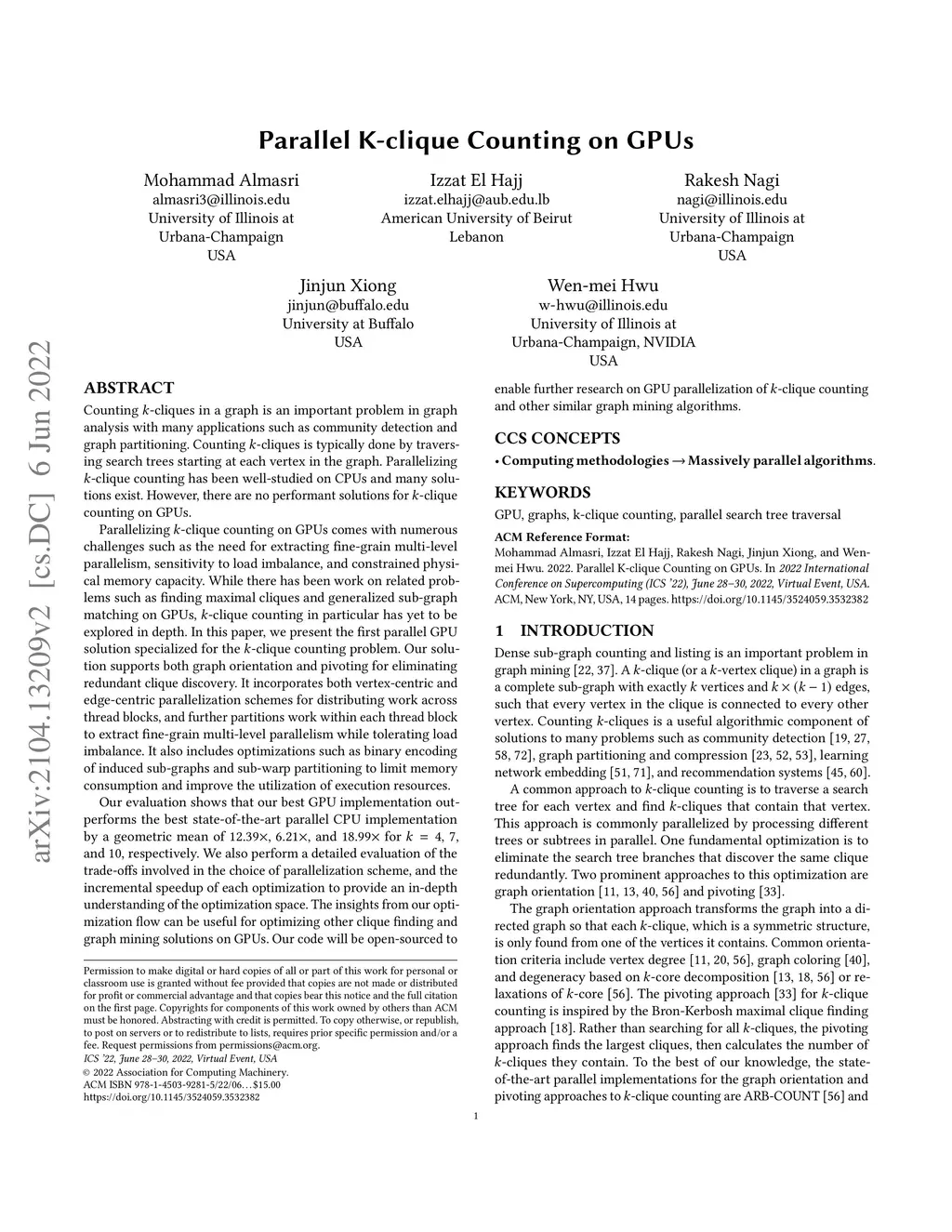 Counting k-cliques in a graph is an important problem in graph analysis with many applications such as community detection and graph partitioning. Counting k-cliques is typically done by traversing search trees starting at each vertex in the graph. Parallelizing k-clique counting has been well-studied on CPUs and many solutions exist. However, there are no performant solutions for k-clique counting on GPUs. Parallelizing k-clique counting on GPUs comes with numerous challenges such as the need for extracting fine-grain multi-level parallelism, sensitivity to load imbalance, and constrained physical memory capacity. While there has been work on related problems such as finding maximal cliques and generalized sub-graph matching on GPUs, k-clique counting in particular has yet to be explored in depth. In this paper, we present the first parallel GPU solution specialized for the k-clique counting problem. Our solution supports both graph orientation and pivoting for eliminating redundant clique discovery. It incorporates both vertex-centric and edge-centric parallelization schemes for distributing work across thread blocks, and further partitions work within each thread block to extract fine-grain multi-level parallelism while tolerating load imbalance. It also includes optimizations such as binary encoding of induced sub-graphs and sub-warp partitioning to limit memory consumption and improve the utilization of execution resources. Our evaluation shows that our best GPU implementation outperforms the best state-of-the-art parallel CPU implementation by a geometric mean of 12.39x, 6.21x, and 18.99x for k=4, 7, and 10, respectively. We also perform a detailed evaluation of the trade-offs involved in the choice of parallelization scheme, and the incremental speedup of each optimization to provide an in-depth understanding of the optimization space. ...