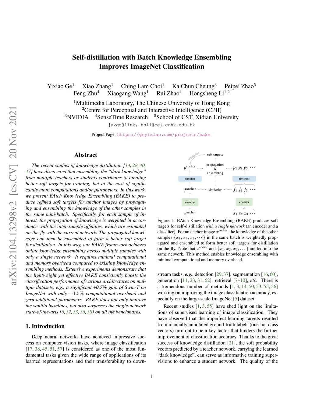 Self-distillation with Batch Knowledge Ensembling Improves ImageNet