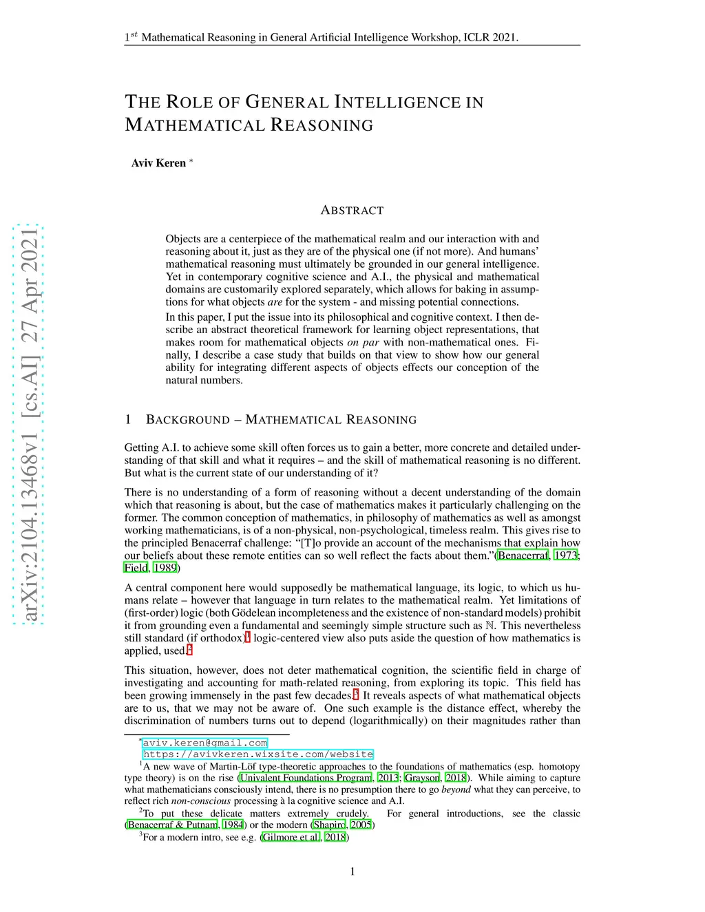 The Role of General Intelligence in Mathematical Reasoning