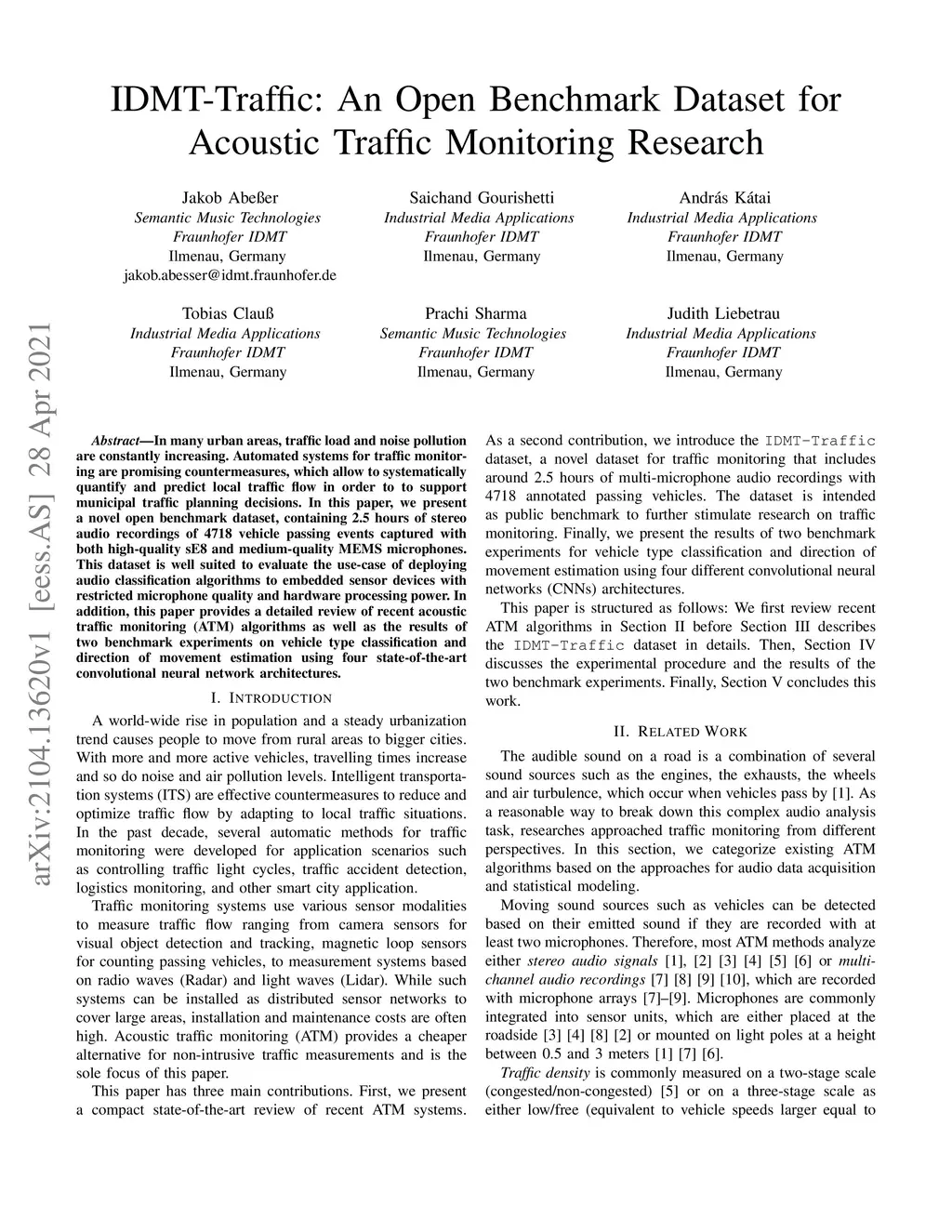 IDMT-Traffic: An Open Benchmark Dataset for Acoustic Traffic Monitoring