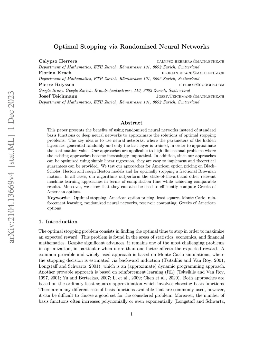 This paper presents the benefits of using randomized neural networks instead of standard basis functions or deep neural networks to approximate the solutions of optimal stopping problems. The key idea is to use neural networks, where the parameters of the hidden layers are generated randomly and only the last layer is trained, in order to approximate the continuation value. Our approaches are applicable to high dimensional problems where the existing approaches become increasingly impractical. In addition, since our approaches can be optimized using simple linear regression, they are easy to implement and theoretical guarantees can be provided. We test our approaches for American option pricing on Black--Scholes, Heston and rough Heston models and for optimally stopping a fractional Brownian motion. In all cases, our algorithms outperform the state-of-the-art and other relevant machine learning approaches in terms of computation time while achieving comparable results. Moreover, we show that they can also be used to efficiently compute Greeks of American options.