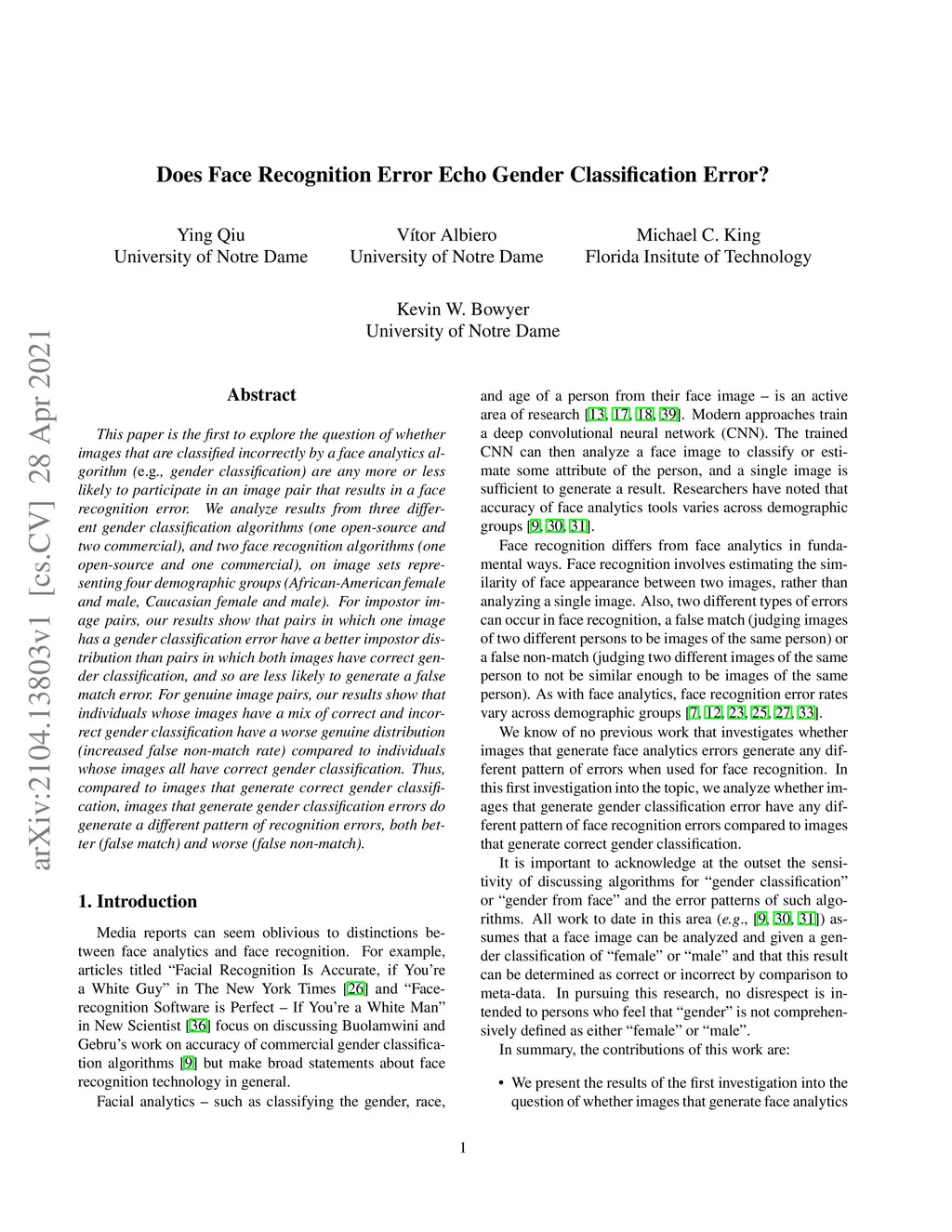 Does Face Recognition Error Echo Gender Classification Error?
