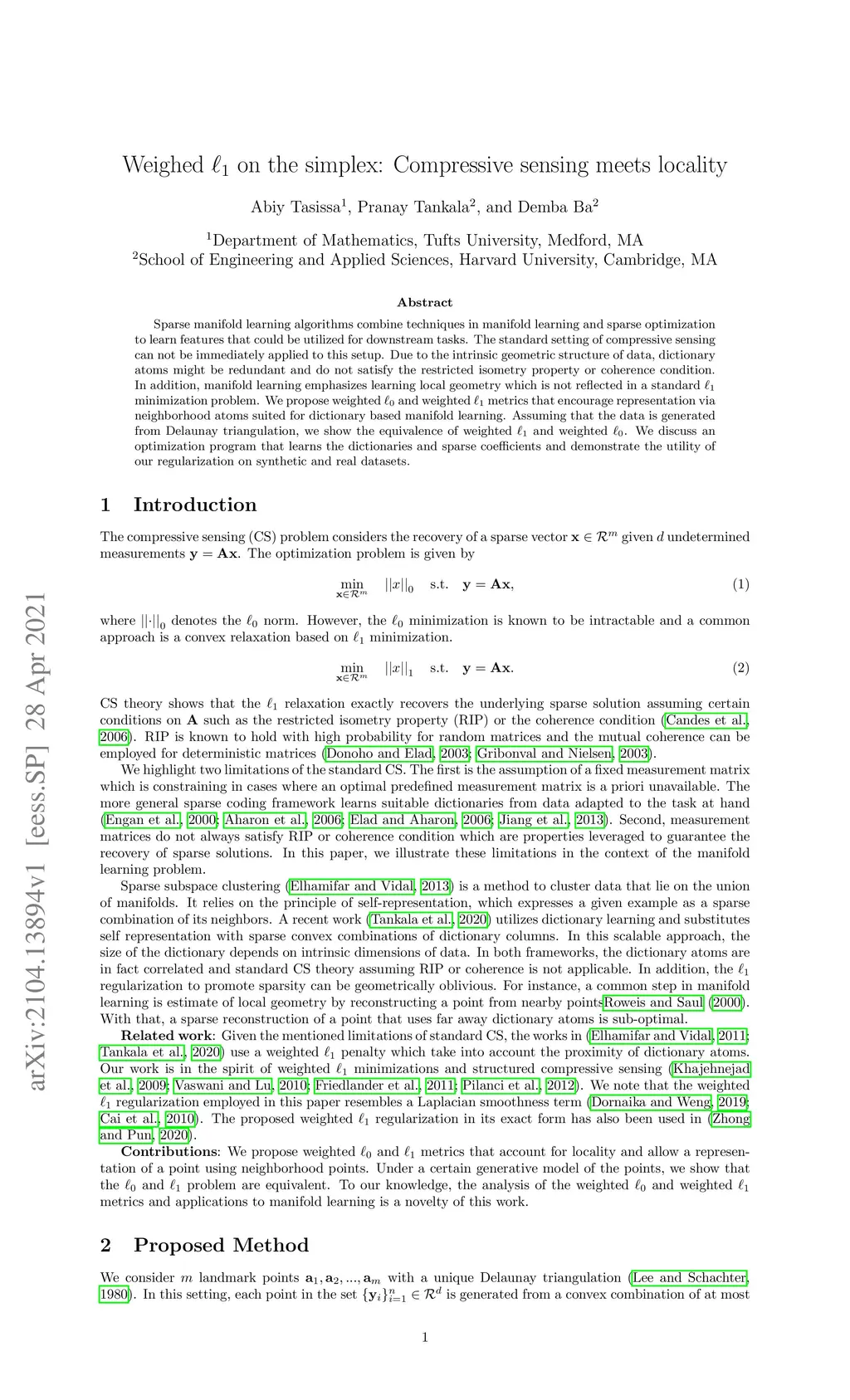 Weighed on the simplex: Compressive sensing meets locality
