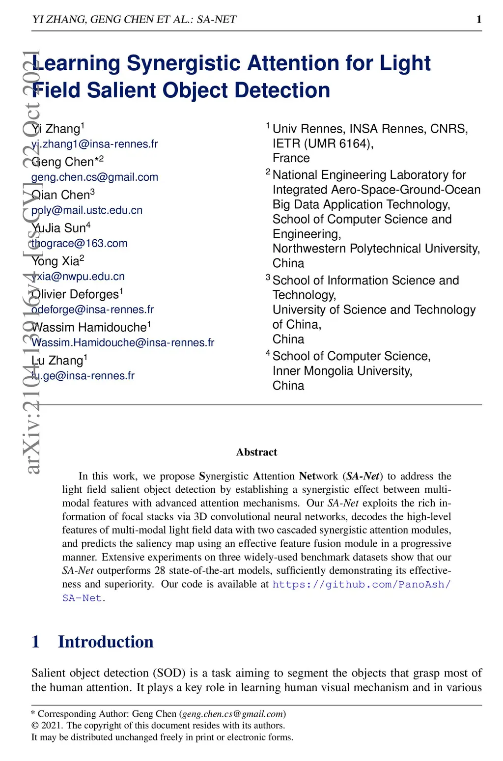 Learning Synergistic Attention for Light Field Salient Object Detection