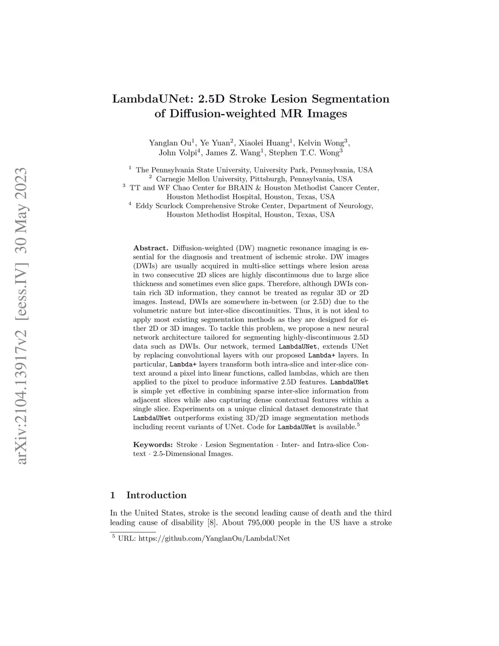LambdaUNet: 2.5D Stroke Lesion Segmentation of Diffusion-weighted MR