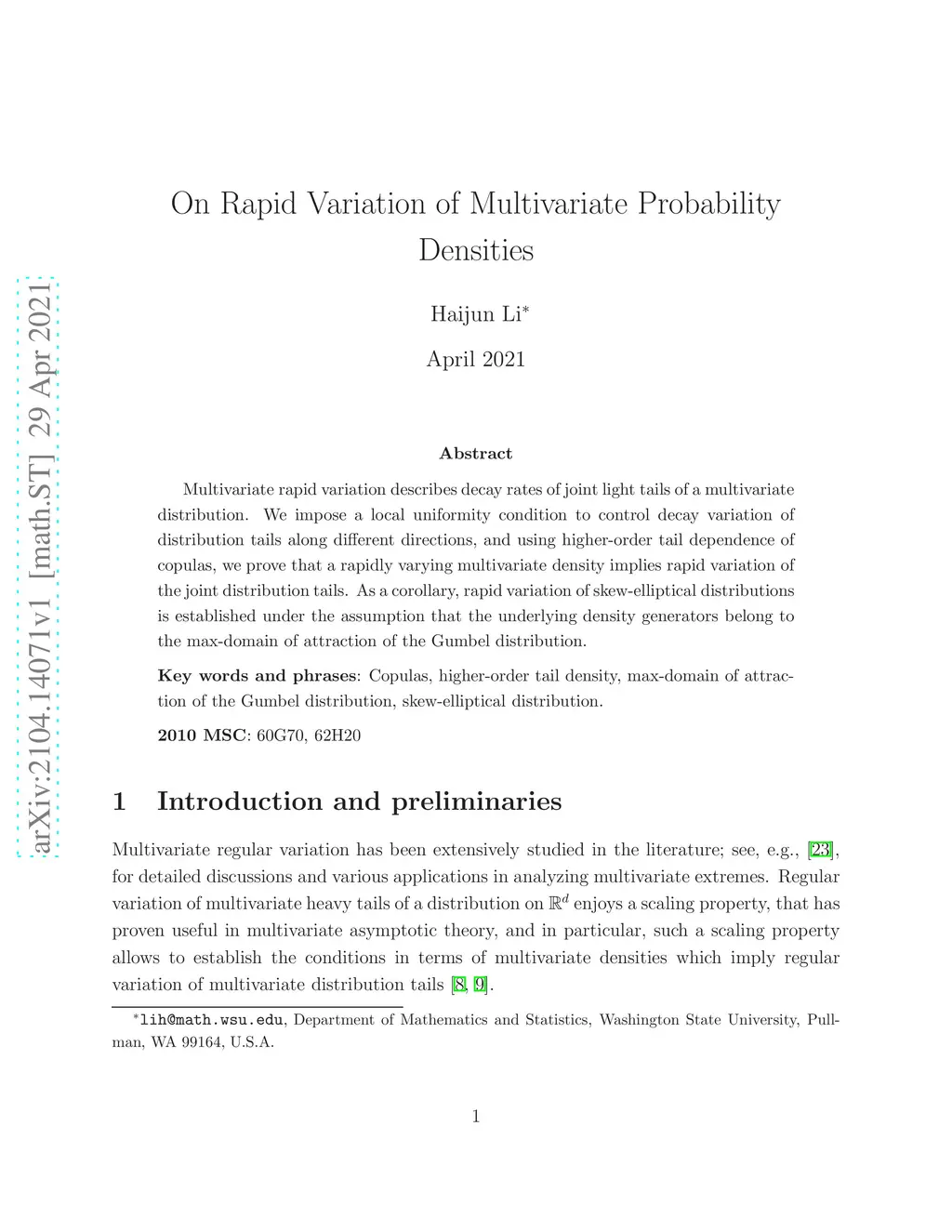 On Rapid Variation of Multivariate Probability Densities