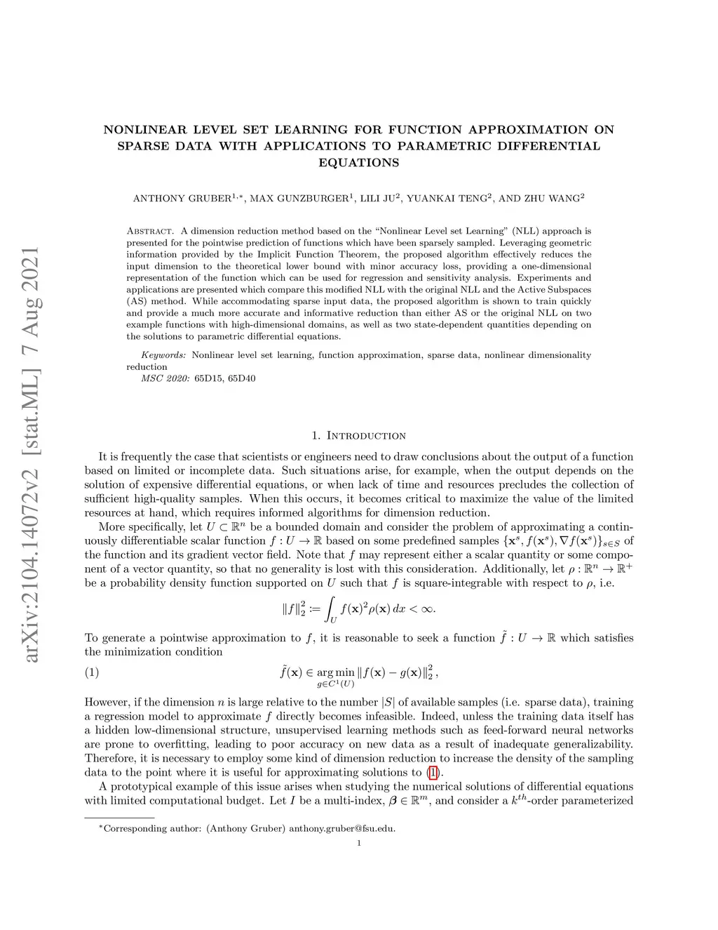 Nonlinear Level Set Learning for Function Approximation on Sparse Data