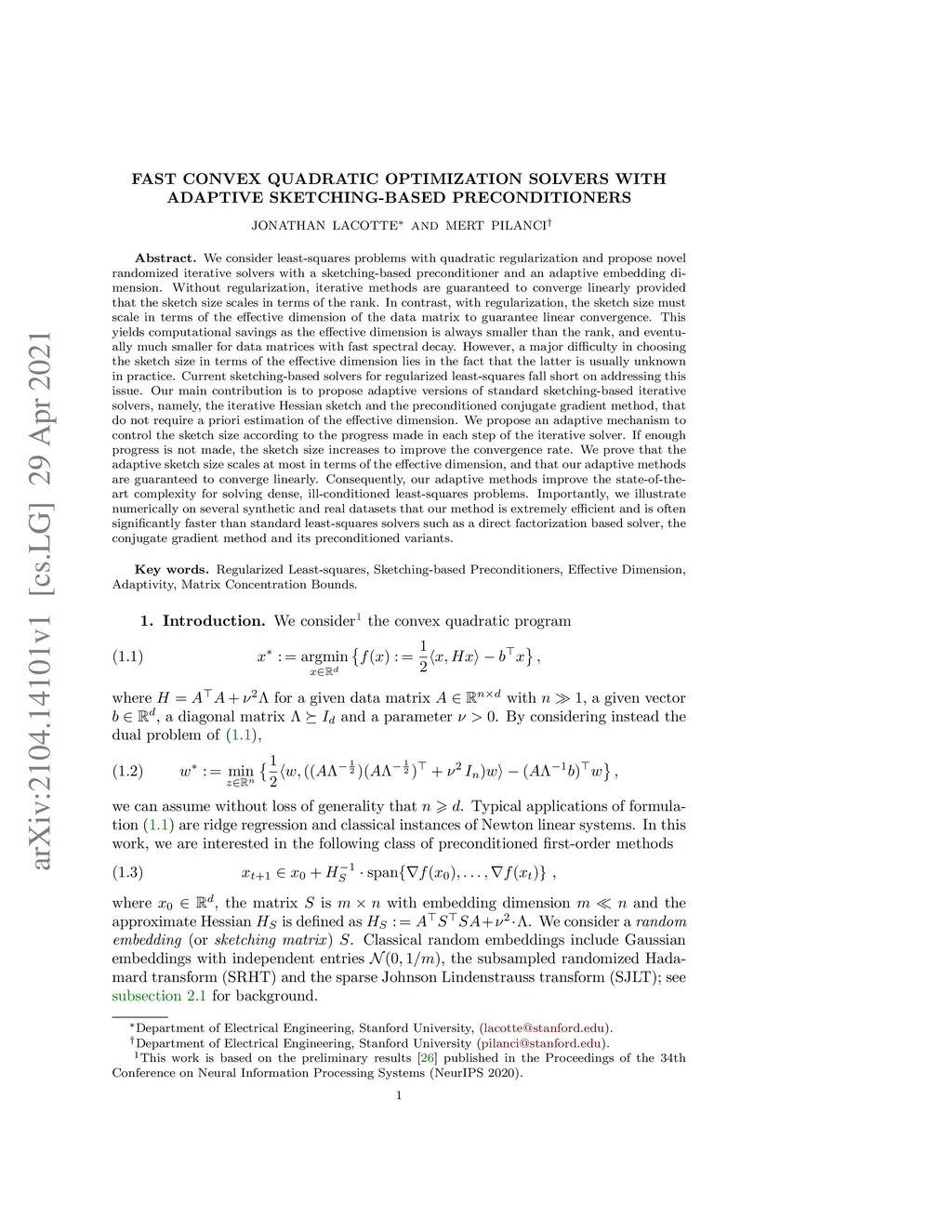 Fast Convex Quadratic Optimization Solvers with Adaptive Sketching-based