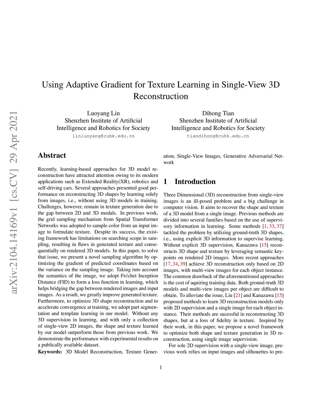 Using Adaptive Gradient for Texture Learning in Single-View 3D