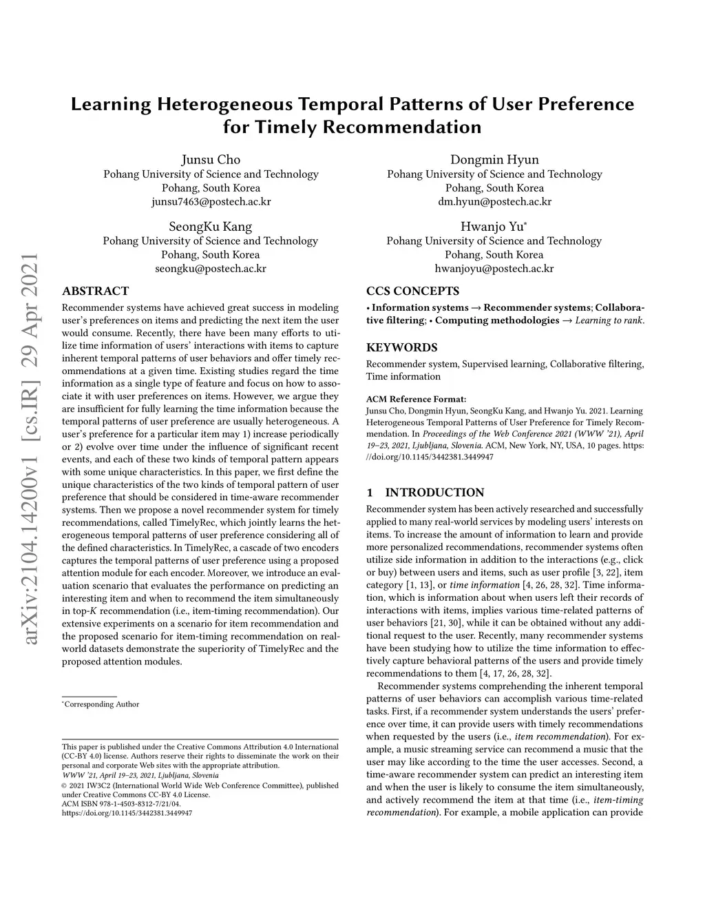 Learning Heterogeneous Temporal Patterns of User Preference for Timely