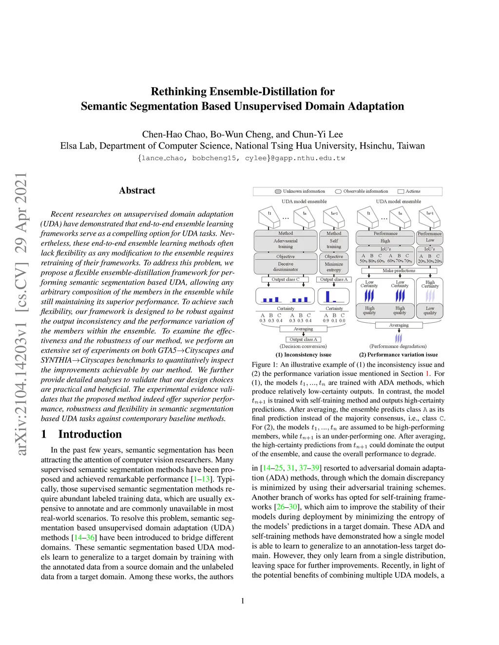 Recent researches on unsupervised domain adaptation (UDA) have demonstrated that end-to-end ensemble learning frameworks serve as a compelling option for UDA tasks. Nevertheless, these end-to-end ensemble learning methods often lack flexibility as any modification to the ensemble requires retraining of their frameworks. To address this problem, we propose a flexible ensemble-distillation framework for performing semantic segmentation based UDA, allowing any arbitrary composition of the members in the ensemble while still maintaining its superior performance. To achieve such flexibility, our framework is designed to be robust against the output inconsistency and the performance variation of the members within the ensemble. To examine the effectiveness and the robustness of our method, we perform an extensive set of experiments on both GTA5 to Cityscapes and SYNTHIA to Cityscapes benchmarks to quantitatively inspect the improvements achievable by our method. We further provide detailed analyses to validate that our design choices are practical and beneficial. The experimental evidence validates that the proposed method indeed offer superior performance, robustness and flexibility in semantic segmentation based UDA tasks against contemporary baseline methods.