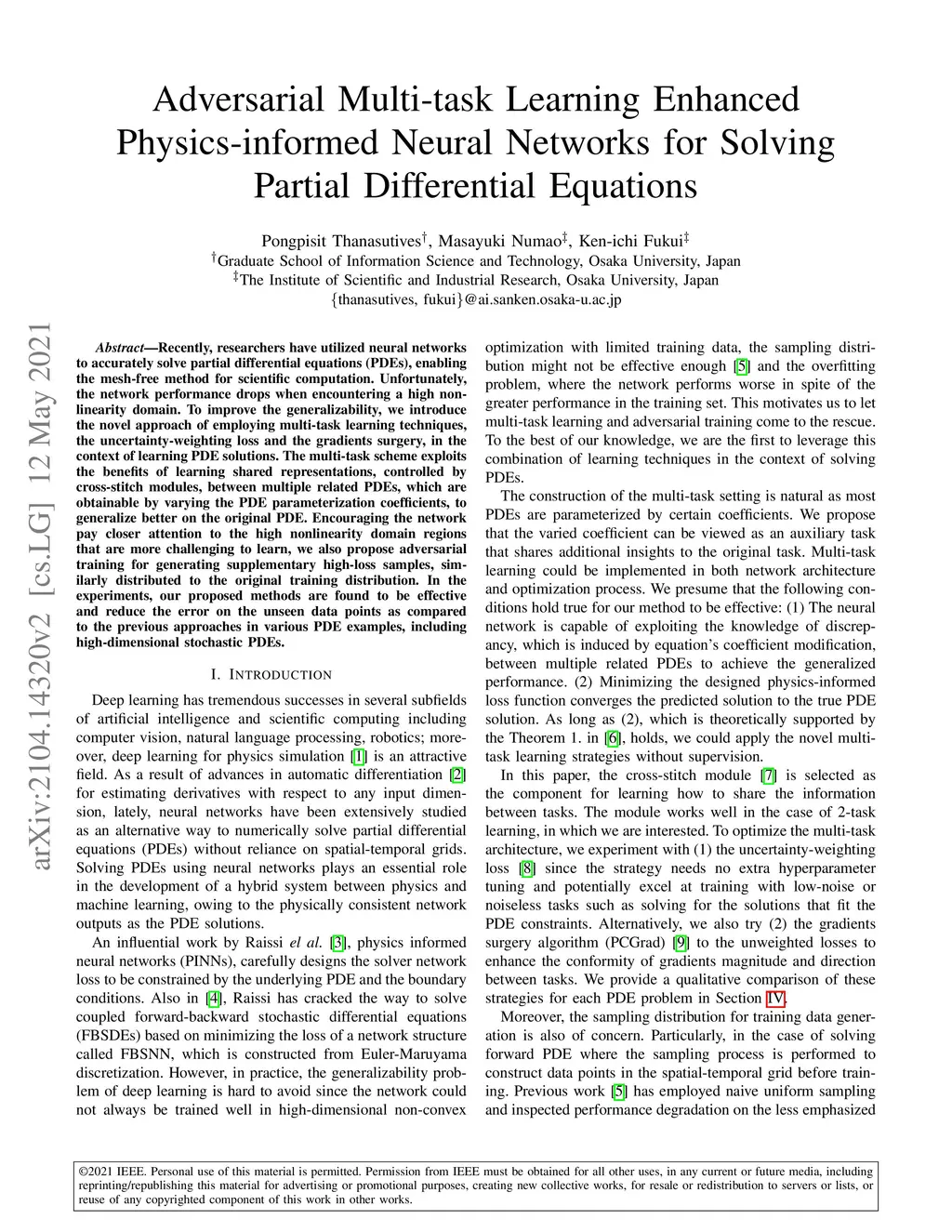 Adversarial Multi-task Learning Enhanced Physics-informed Neural