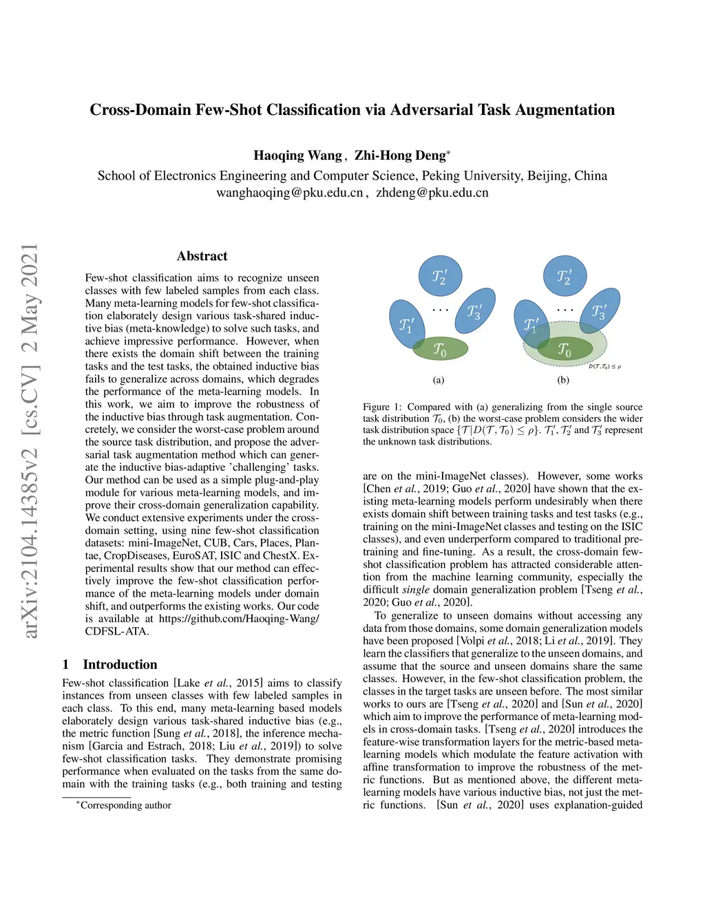 Cross-Domain Few-Shot Classification via Adversarial Task Augmentation