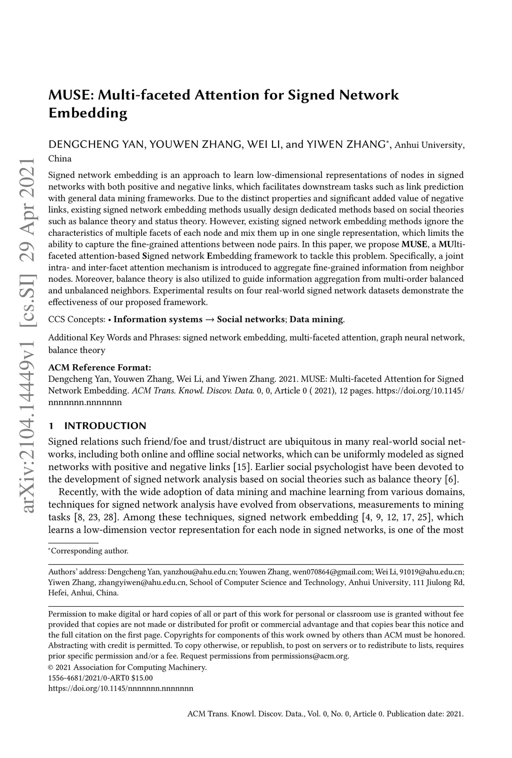 MUSE: Multi-faceted Attention for Signed Network Embedding