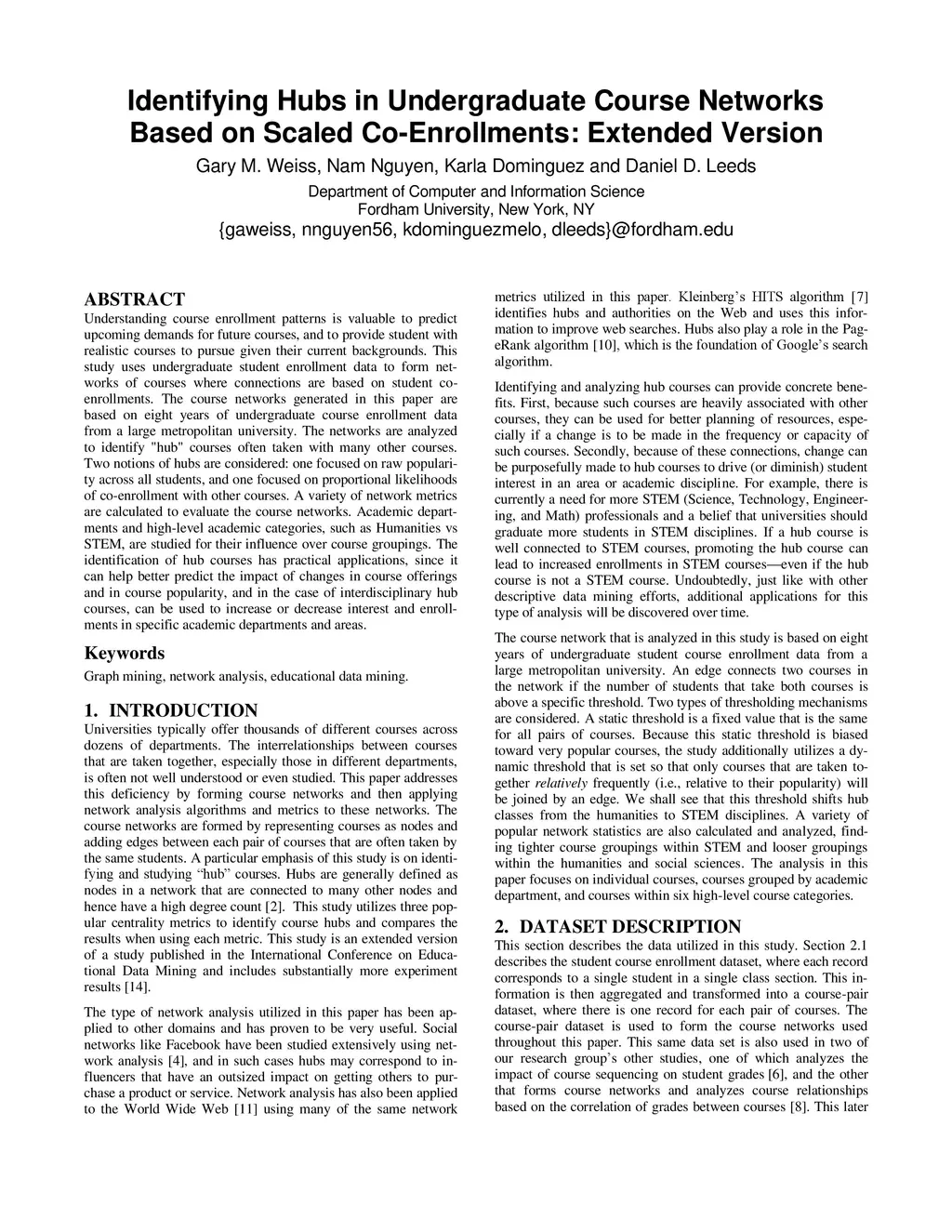Identifying Hubs in Undergraduate Course Networks Based on Scaled