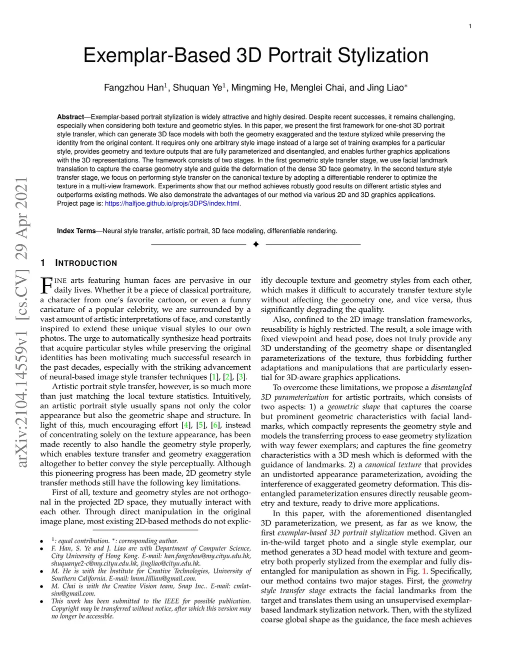 Exemplar-based portrait stylization is widely attractive and highly desired. Despite recent successes, it remains challenging, especially when considering both texture and geometric styles. In this paper, we present the first framework for one-shot 3D portrait style transfer, which can generate 3D face models with both the geometry exaggerated and the texture stylized while preserving the identity from the original content. It requires only one arbitrary style image instead of a large set of training examples for a particular style, provides geometry and texture outputs that are fully parameterized and disentangled, and enables further graphics applications with the 3D representations. The framework consists of two stages. In the first geometric style transfer stage, we use facial landmark translation to capture the coarse geometry style and guide the deformation of the dense 3D face geometry. In the second texture style transfer stage, we focus on performing style transfer on the canonical texture by adopting a differentiable renderer to optimize the texture in a multi-view framework. Experiments show that our method achieves robustly good results on different artistic styles and outperforms existing methods. We also demonstrate the advantages of our method via various 2D and 3D graphics applications. Project page is https://halfjoe.github.io/projs/3DPS/index.html.