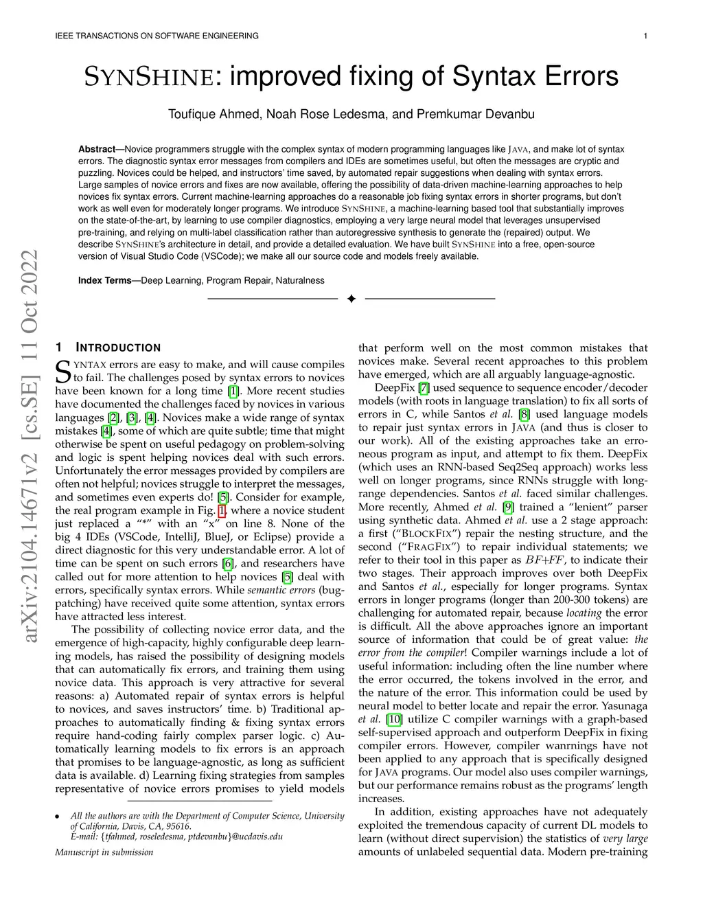 Beginning programmers struggle with the complex grammar of modern programming languages like Java, and make lot of syntax errors. The diagnostic syntax error messages from compilers and IDEs are sometimes useful, but often the messages are cryptic and puzzling. Students could be helped, and instructors' time saved, by automated repair suggestions when dealing with syntax errors. Large samples of student errors and fixes are now available, offering the possibility of data-driven machine-learning approaches to help students fix syntax errors. Current machine-learning approaches do a reasonable job fixing syntax errors in shorter programs, but don't work as well even for moderately longer programs. We introduce SYNFIX, a machine-learning based tool that substantially improves on the state-of-the-art, by learning to use compiler diagnostics, employing a very large neural model that leverages unsupervised pre-training, and relying on multi-label classification rather than autoregressive synthesis to generate the (repaired) output. We describe SYNFIX's architecture in detail, and provide a detailed evaluation. We have built SYNFIX into a free, open-source version of Visual Studio Code; we make all our source code and models freely available.