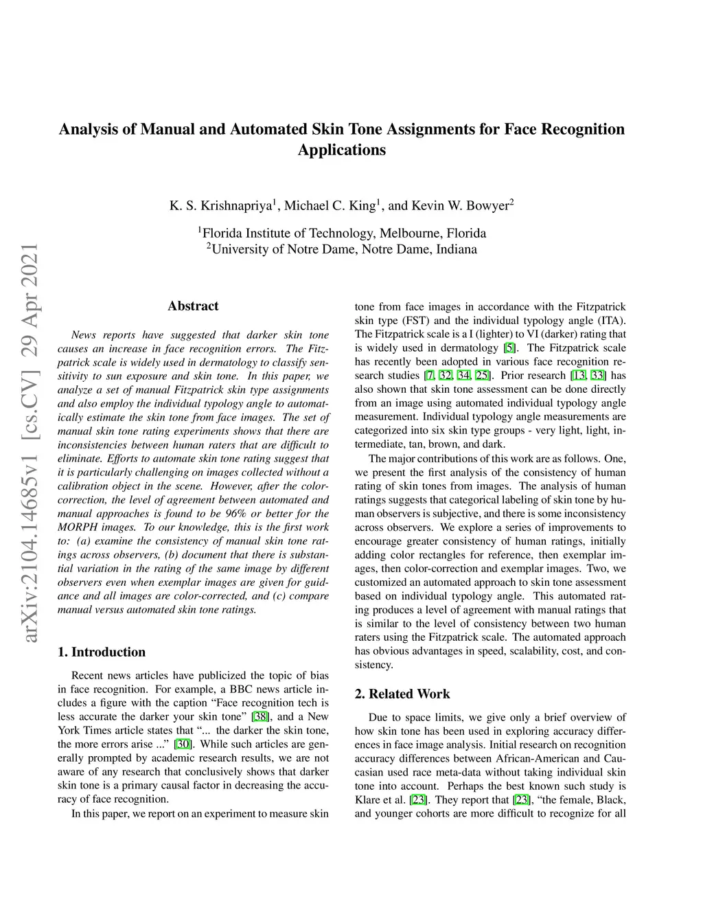 Analysis of Manual and Automated Skin Tone Assignments for Face