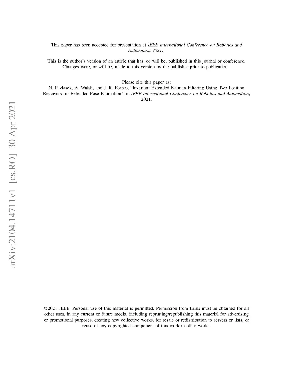 Invariant Extended Kalman Filtering Using Two Position Receivers for