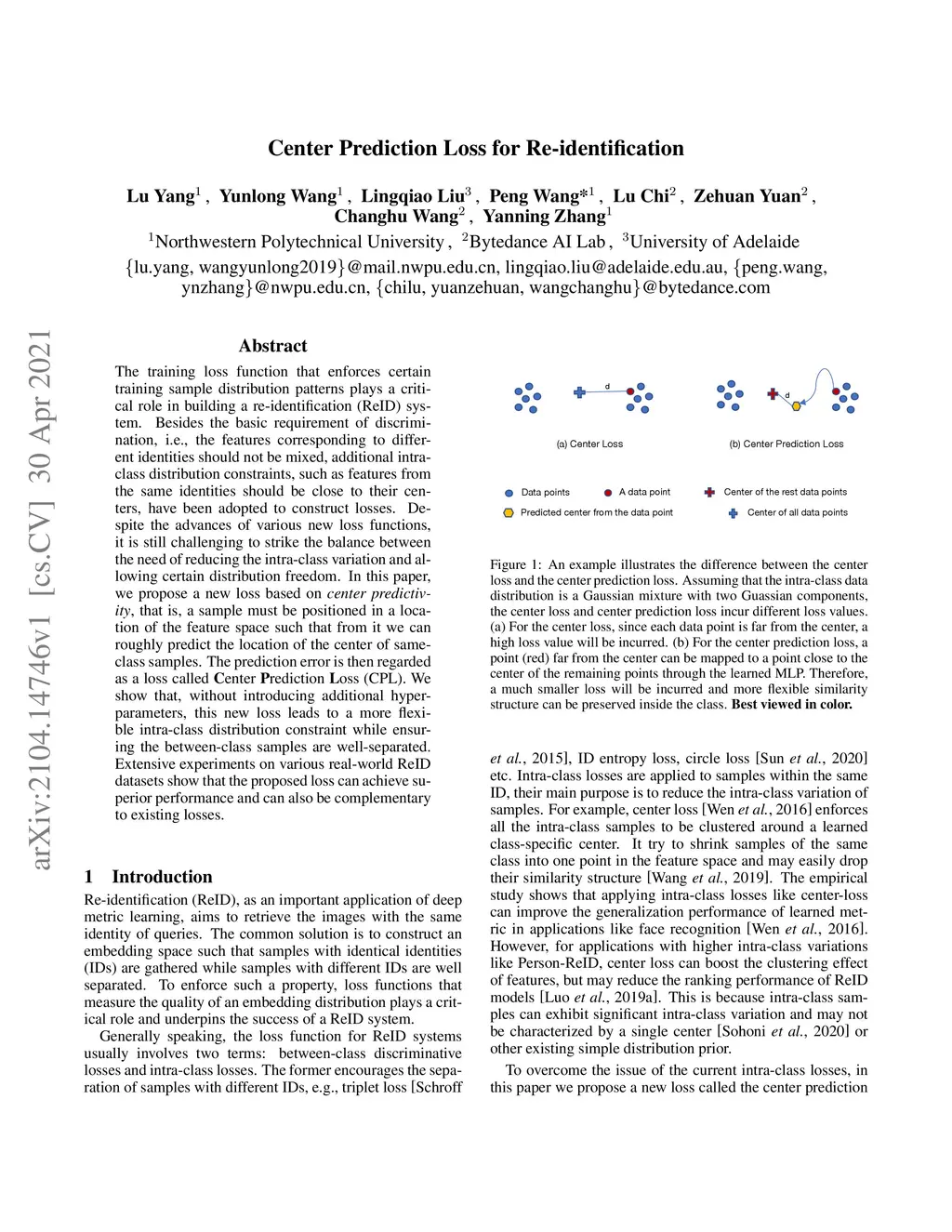 Center Prediction Loss for Re-identification