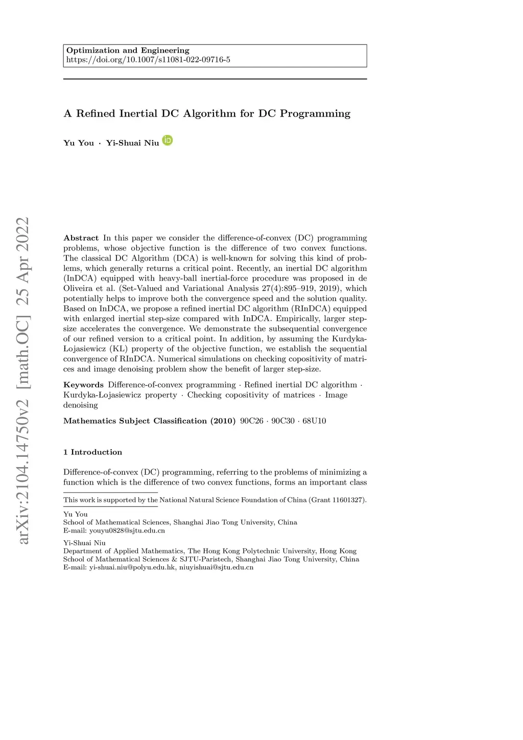 In this paper we consider the difference-of-convex (DC) programming problems, whose objective function is the difference of two convex functions. The classical DC Algorithm (DCA) is well-known for solving this kind of problems, which generally returns a critical point. Recently, an inertial DC algorithm (InDCA) equipped with heavy-ball inertial-force procedure was proposed in de Oliveira et al. (Set-Valued and Variational Analysis 27(4):895--919, 2019), which potentially helps to improve both the convergence speed and the solution quality. Based on InDCA, we propose a refined inertial DC algorithm (RInDCA) equipped with enlarged inertial step-size compared with InDCA. Empirically, larger step-size accelerates the convergence. We demonstrate the subsequential convergence of our refined version to a critical point. In addition, by assuming the Kurdyka-{\L}ojasiewicz (KL) property of the objective function, we establish the sequential convergence of RInDCA. Numerical simulations on checking copositivity of matrices and image denoising problem show the benefit of larger step-size.