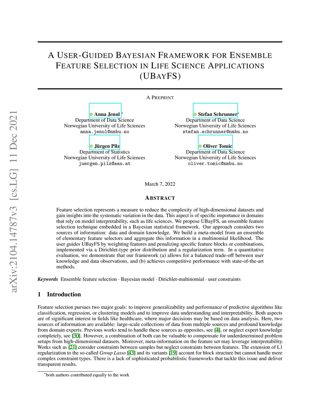 Science Applications (UBayFS)